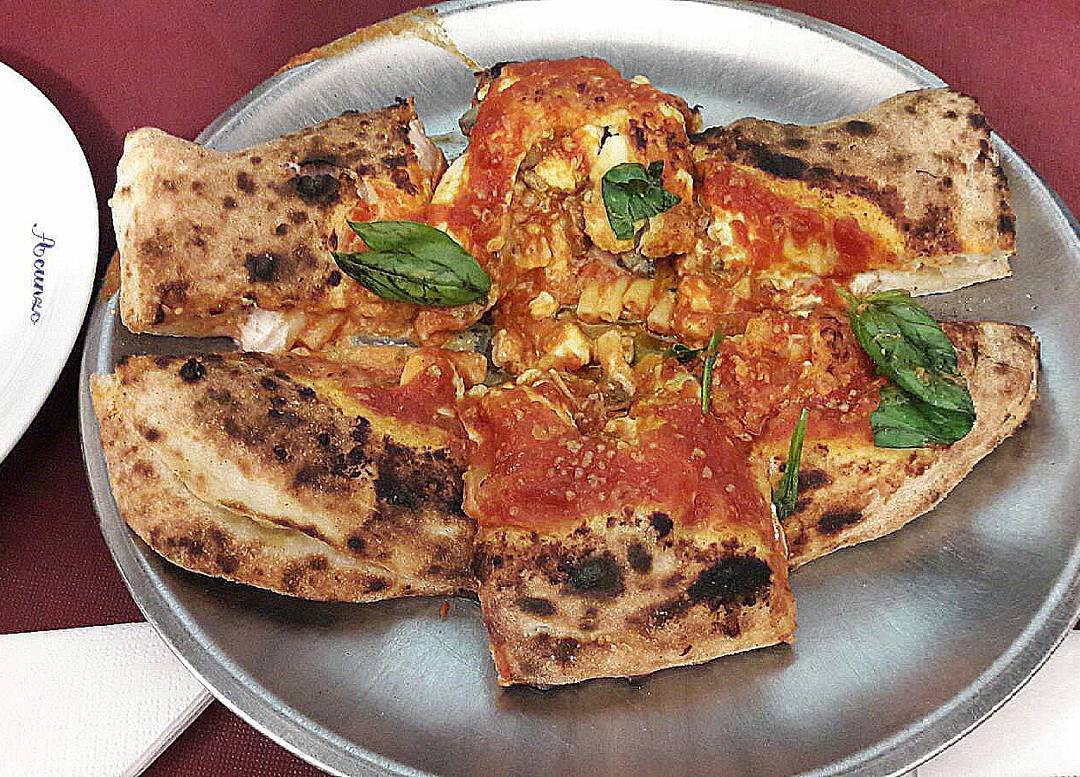 Pizza borghese in contrapposizione con quella popolare del centro storico dove, di fatto, è nata: più piccola (e non “a ruota di carretta”), compatta e croccante. Servita in piatti di metallo, ecco quella dedicata alla maschera mangiamaccheroni per eccellenza: la Pulcinella è ripiena di mezzanelli conditi al ragù bolognese, uova sode, funghi trifolati, ricotta e fiordilatte.
