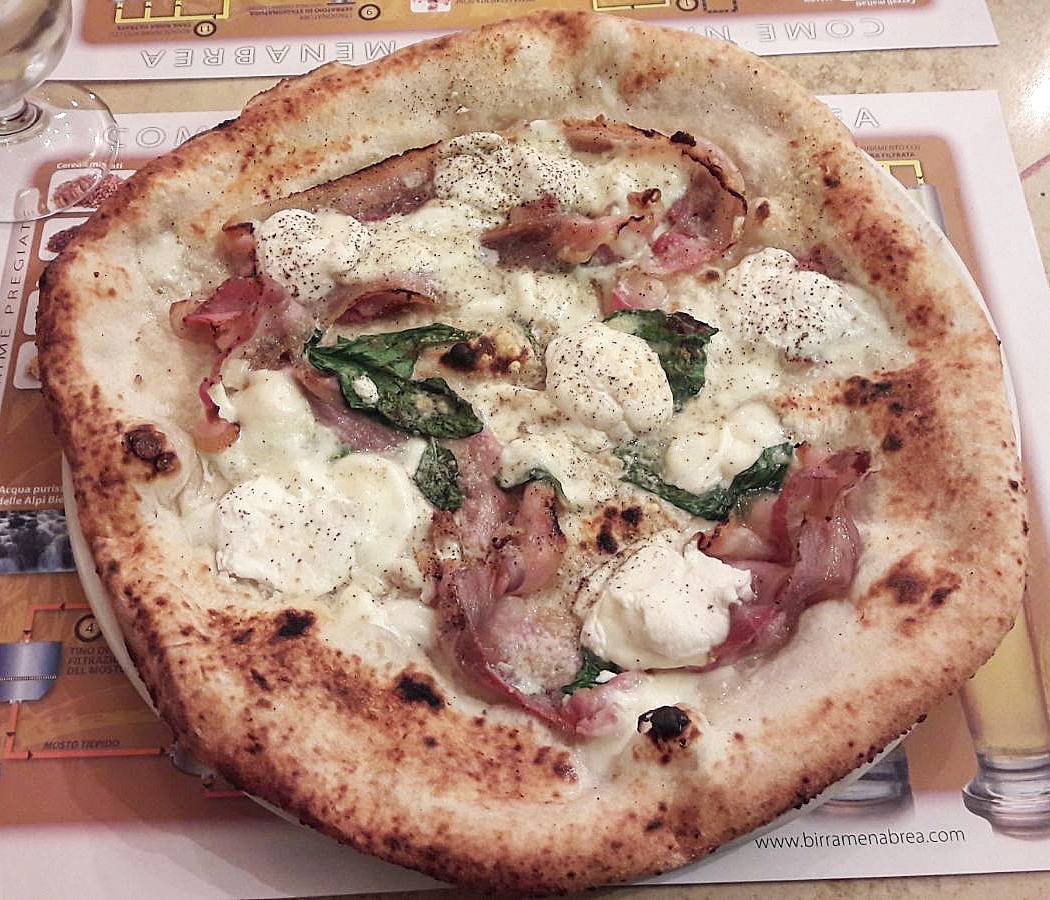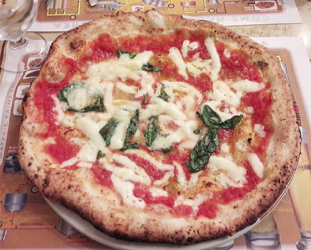 La pizza, istantanea seppur più cara della media, rispetta fedelmente il disciplinare: disco sottile e medio, con bordo e cottura omogenei e perfetti; impasto rigido, leggero e digeribile, con alveolatura timidissima, dal sapore educato.