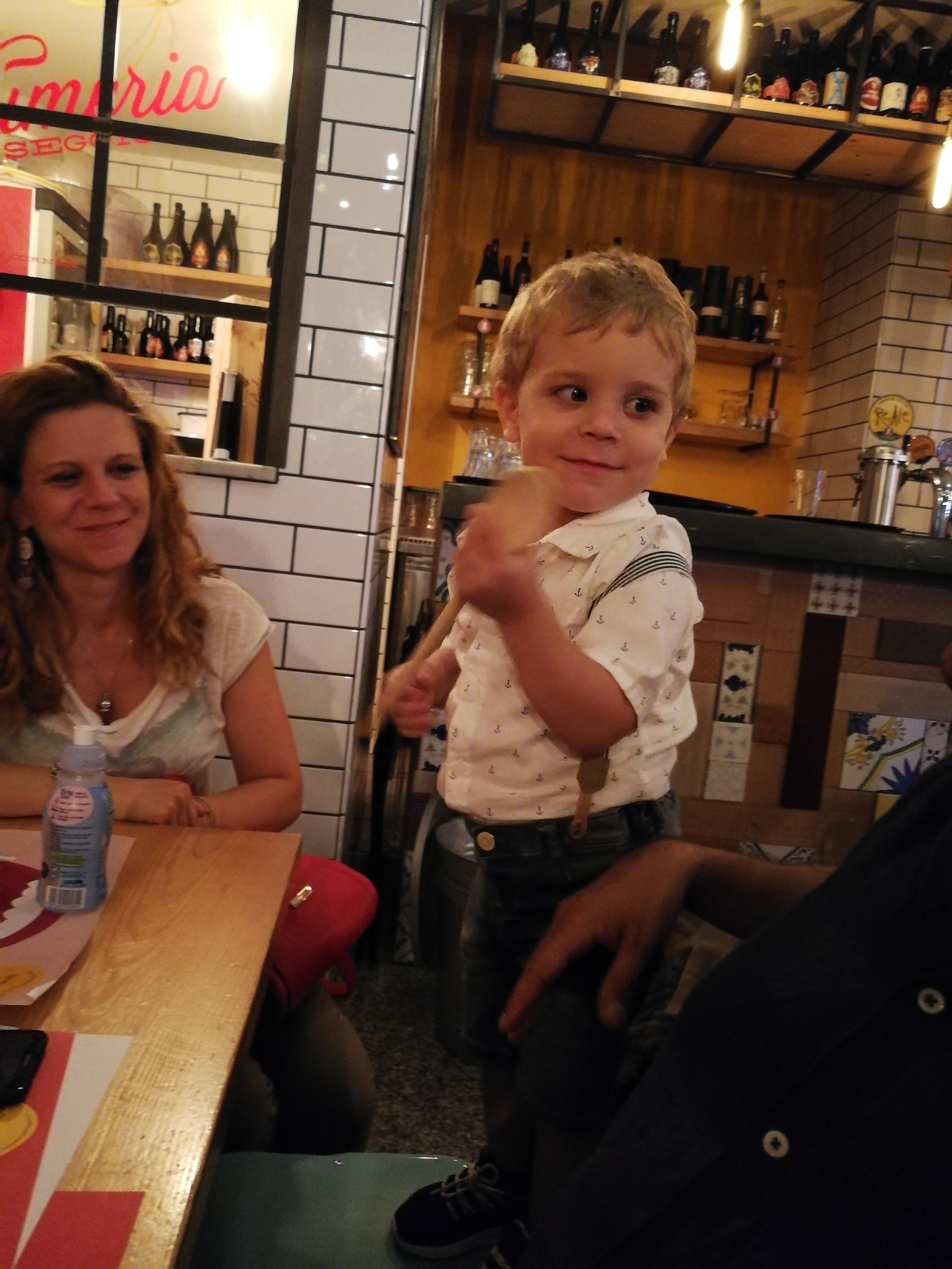 Da fuori colpiscono le grandi vetrate con il logo in vista: come in un film americano, passeggiando scruti quel che succede nel locale, le persone che mangiano e si sporcano (diciamolo, non a tutti può piacere!), panini che viaggiano, luci soffuse. Entri ed è un tripudio di dettagli: sedie colorate e tutte diverse, parete tappezzata dalle loro grafiche che ritrovi sulle tovagliette, un angolo relax per sopperire all’attesa, musica di sottofondo.