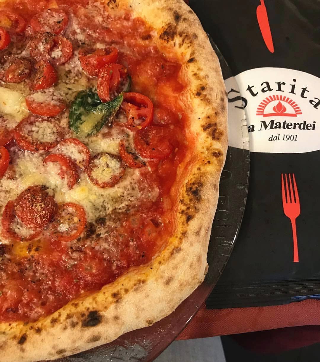 Vabbè, trascurando i quesiti esistenziali, stasera si onora l’anniversario con la “Marinara Starita” di Pizzeria Starita del grande don Antonio a Materdei con passata di pomodoro, pomodorino datterino, aglio, origano, pepe e formaggio.
