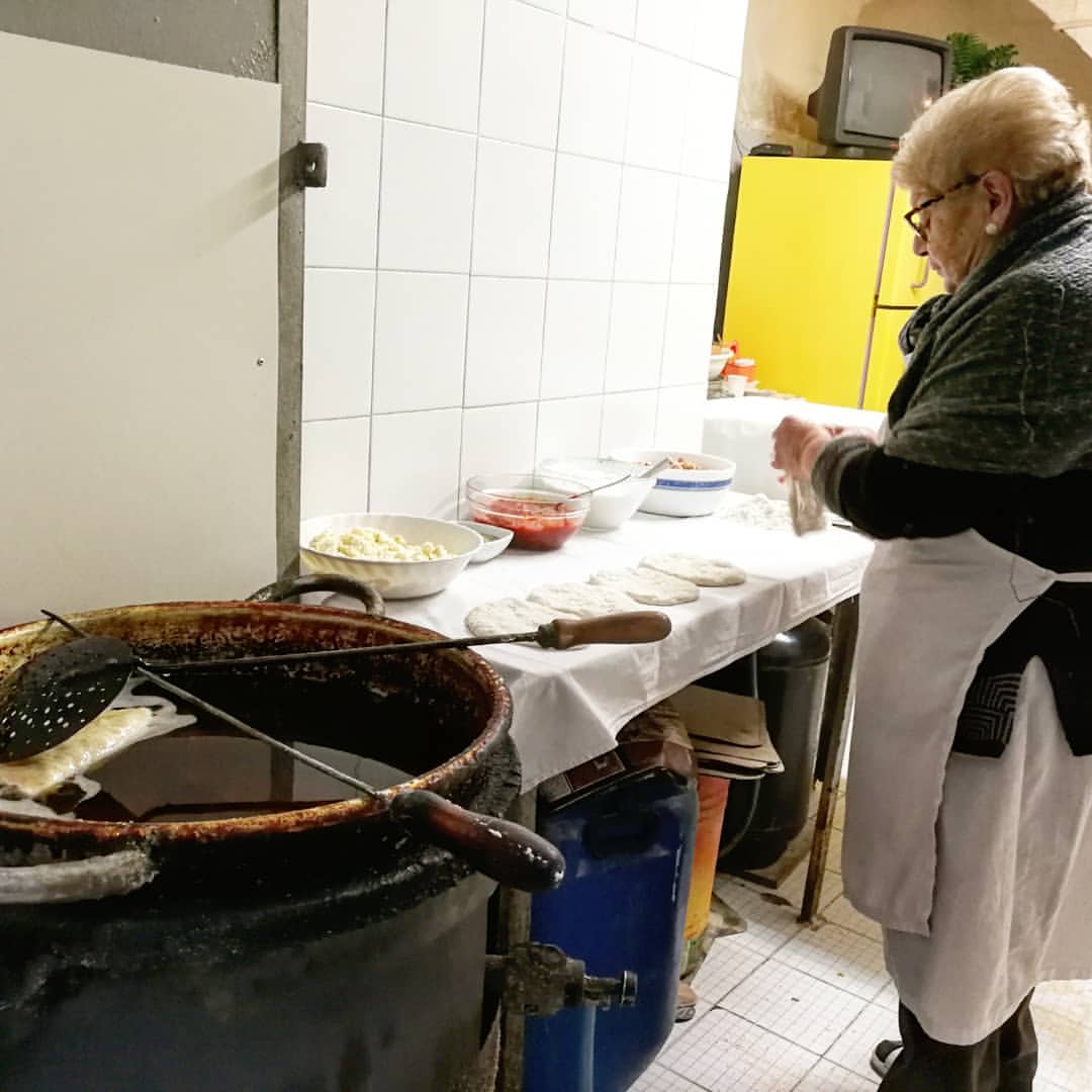 Un “vascio” (basso), un calderone di olio caldo e la signora Fernanda, 80enne arzilla e cordiale, che da cento anni, da madre in figlia, porta avanti la tradizione della pizza fritta.