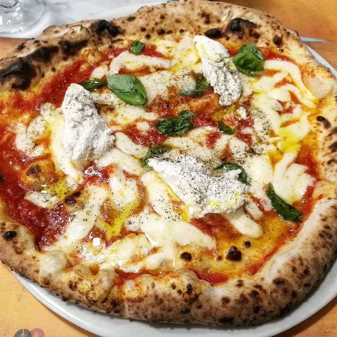Ed Elena e il suo mistero diventano una pizza: ragù napoletano di cottura lunga, ricotta di cestino, fiordilatte di Agerola, formaggio, basilico riccio napoletano, olio extravergine d’oliva, pepe di Rimbas. Una pizza che ha il suono delle domeniche napoletane, autentica, saporita ma raffinata, come lo scrivere simile a un lungo “pippiare”, come l’opera in sé, una complessità di strati dal sapore unico.