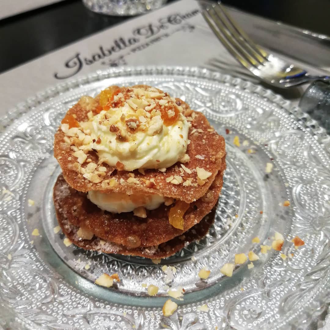 Penso e ripenso alle parole da usare per descrivere questo connubio tra l’arte del fritto, la Patisserie e la scuola napoletana, ma mi sento disarmato! È un viaggio mistico tra le nuvole: le sfoglie sono delicatamente croccanti, zuccherine, la crema una spuma che ti avvolge, le nocciole e la confettura ti riportano sulla terra…