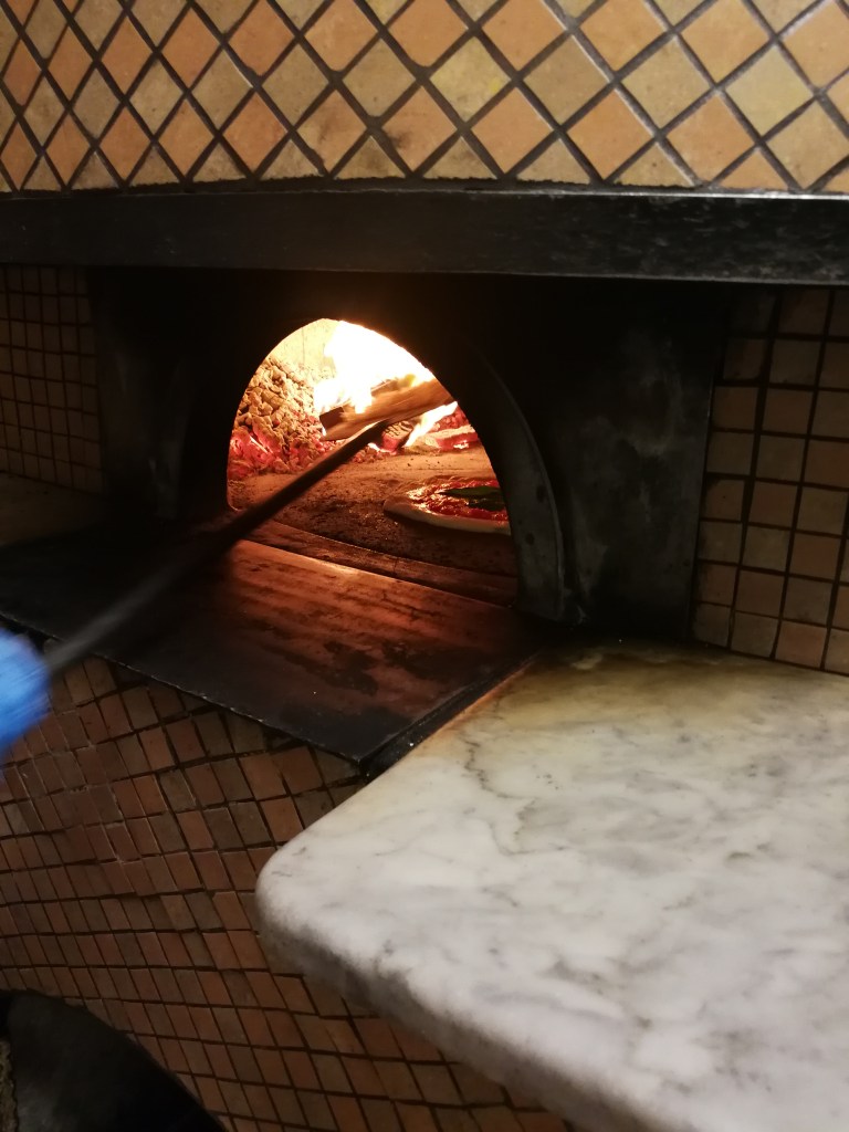 E via nel forno dove la temperatura veniva innalzata vertiginosamente con l’ausilio delle “pampuglie”, in gergo la “botta di calore” per permettere al cornicione, meno ricco di acqua, di dorarsi e pronunciarsi.
