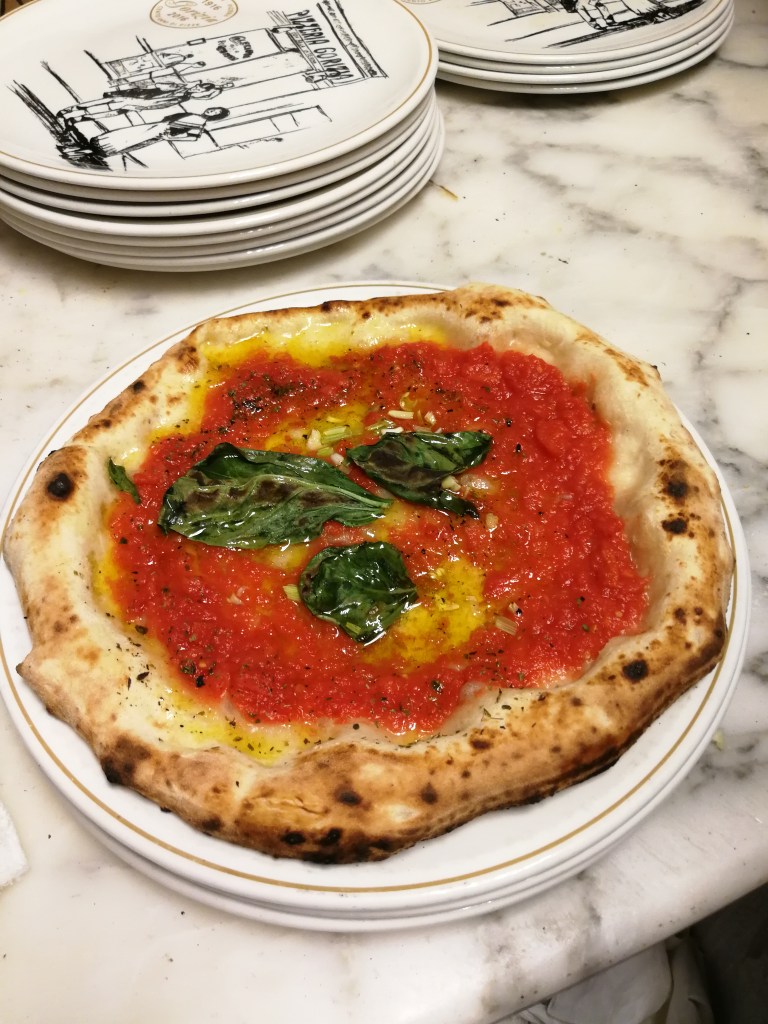 Una pizza dai toni Proustiani, dalle pennellate Courbetiane, che ti strabuzza i pensieri, nonostante eventuali imperfezioni, perché ripercorrere la storia fa bene al cuore, fa bene all’anima, fa bene alla modernità della pizza stessa e soprattutto fa bene a un popolo, quello napoletano, che non può prescindere da essa!