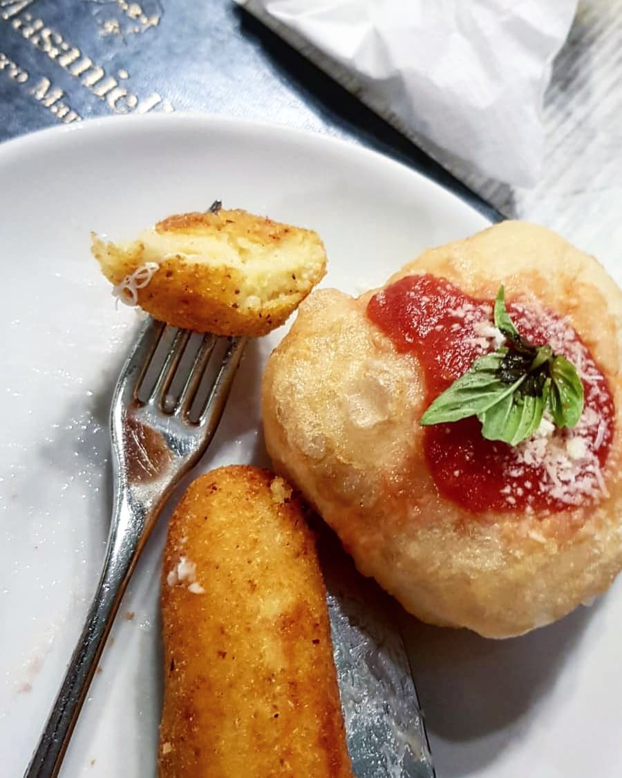 Come quando sono arrivati i fritti (oggetto di voto dei commensali): crocché, montanarina e frittatina di pasta di Gragnano “Pastificio dei Campi”.