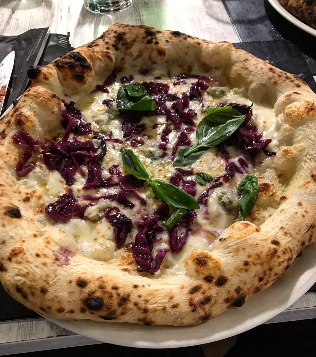 Presto dimostrato con la Profondo Rosso, che sposa due ingredienti atipici per una pizza: base mozzarella di bufala, fonduta di gorgonzola artigianale, cavolo cappuccio rosso, macero in aceto balsamico stravecchio, fermentato e degassificato.