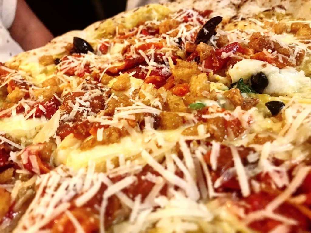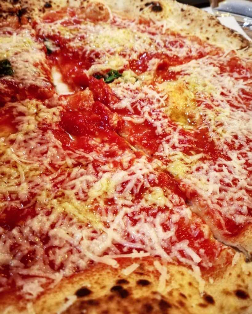 Menzione speciale per la Paparuolo ‘Mbuttunato, premio Gambero Rosso 2018 come “pizza dell’anno”, nata dalla collaborazione con lo chef stellato Nino di Costanzo, che rievoca il sapore della ricetta napoletana: base bianca condita dapprima con una crema di peperone giallo, fiordilatte, provola affumicata, Provolone del Monaco fresco, Parmigiano Reggiano; dopo la cottura in forno vengono aggiunti peperoni rossi marinati in olio extravergine d’oliva, basilico, prezzemolo, pepe e abbondanti olive nere di Gaeta, per terminare con una spolverata di briciole di pane croccanti. Una sola parola, esagerata! Potrebbe apparire pesante, ma merita l’assaggio per il suo equilibrio perfetto.