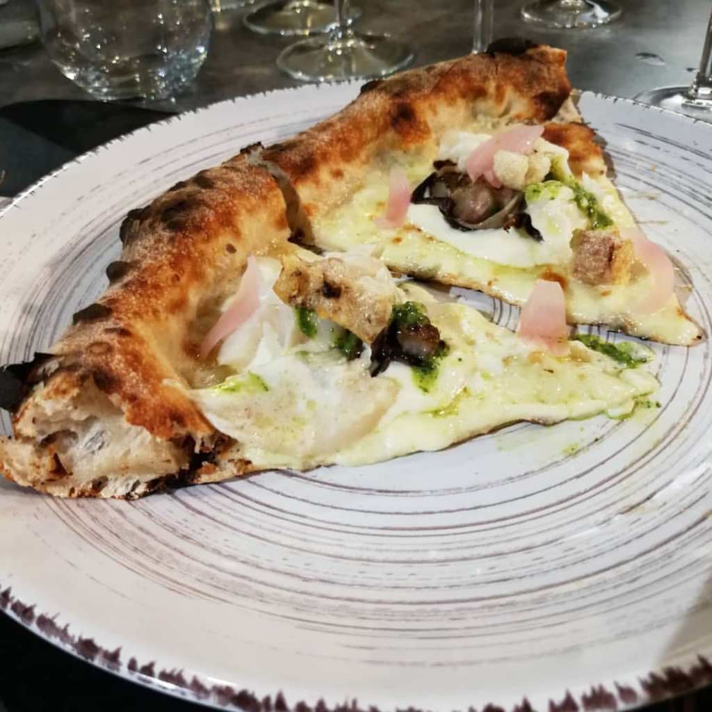 La Don Mimì, infine, profuma di casa: carciofi arrosto, stracchino di bufala e salsiccia di nero casertano con la cremosità dell’aglio orsino che la fa esplodere, rendendola briosa.