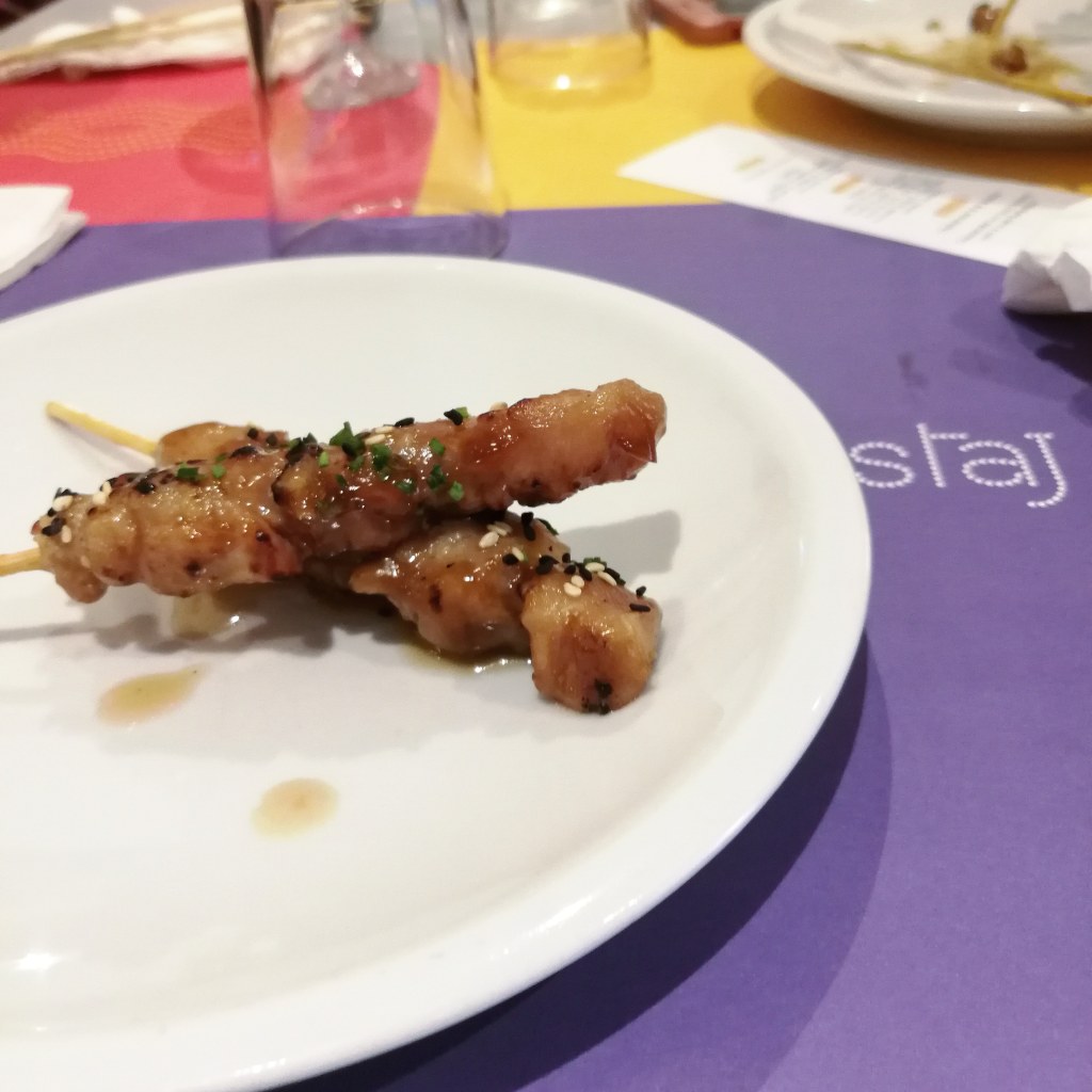 Antipasti portatori sani di prospettive goduriose. Avrei mangiato 100 di quei Yakitori, che, detto tra noi, sono degli spiedini di pollo grigliati, glassati in salsa di soia, sesamo ed erba cipollina, ma poi…alzi la mano chi ha assaporato la bontà del tofu fritto? Su parliamone…