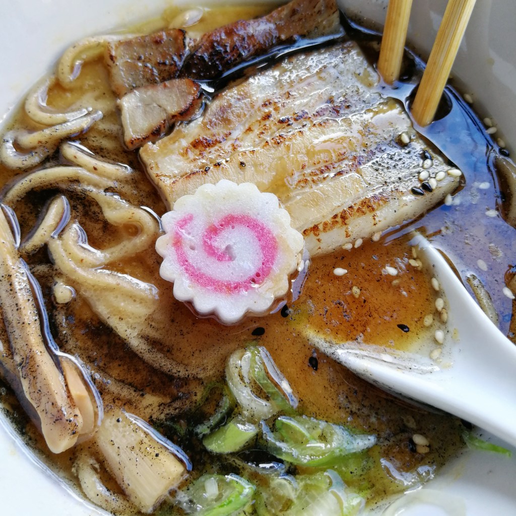 Il mio era un Ramen miso a base di brodo di pollo e dashi di miso (fermentato di soia), con pancia di maiale brasata cucinata a bassa temperatura sottovuoto, olio di aglio bruciato (mayu) e cipollotto fresco, naruto (surimi di pesce), menma (germogli di bambù) e i noodles soba (mix di grano saraceno e farina bianca) realizzati freschi di giornata dallo chef di casa. Una zuppa densa e dal sapore intenso, saporita, pieno di note briose, a tratti mediterranea, con le “tagliatelle” fatte a regola d’arte, dove il risucchio è concesso, gli schizzi, sempre in agguato, diventano un lontano ricordo e la bevuta finale è d’uopo, come la nostra scarpetta.