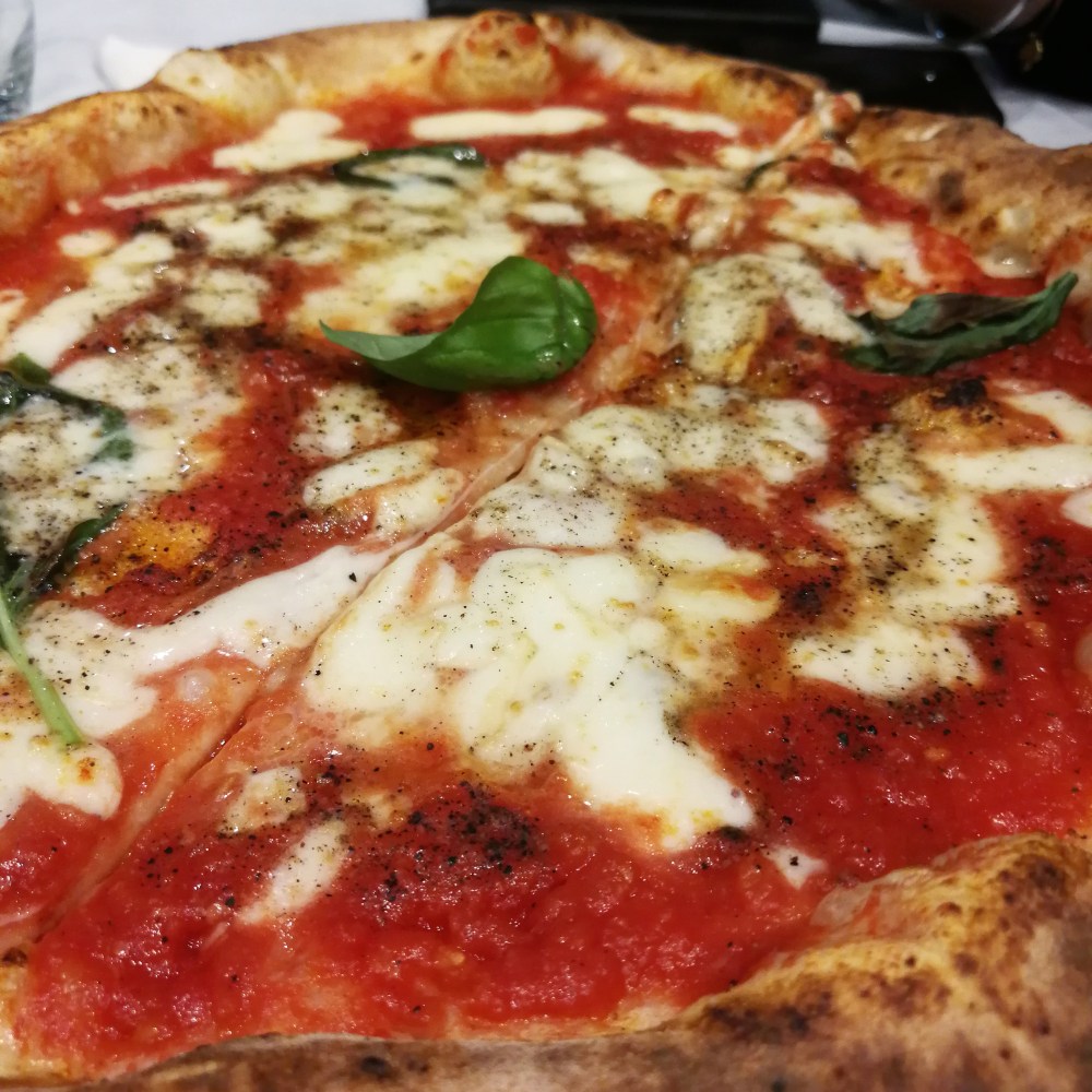 Si passa poi alla Margherita fatta con pomodoro dell’azienda Gustarosso e fiordilatte d’Agerola. Un gusto tradizionale propriamente detto, antico, Napoli risulta assolutamente presente.
