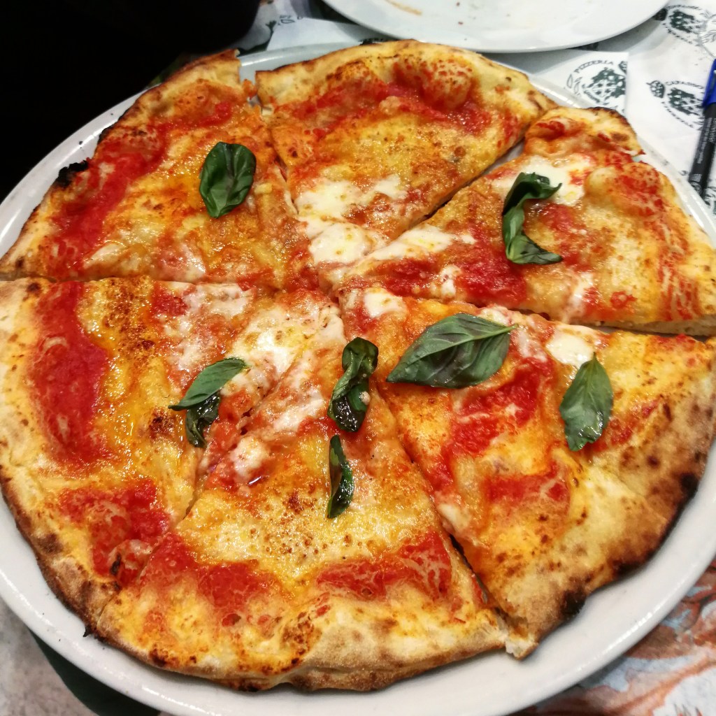 Margherita classica magistrale con fiordilatte, pomodoro San Marzano, olio e basilico. Gustosa la Cosacca tirata sottile ma risulta giustamente elastica, dove la salsa di pomodoro è buona e dolce e il pecorino perfettamente equilibrato.