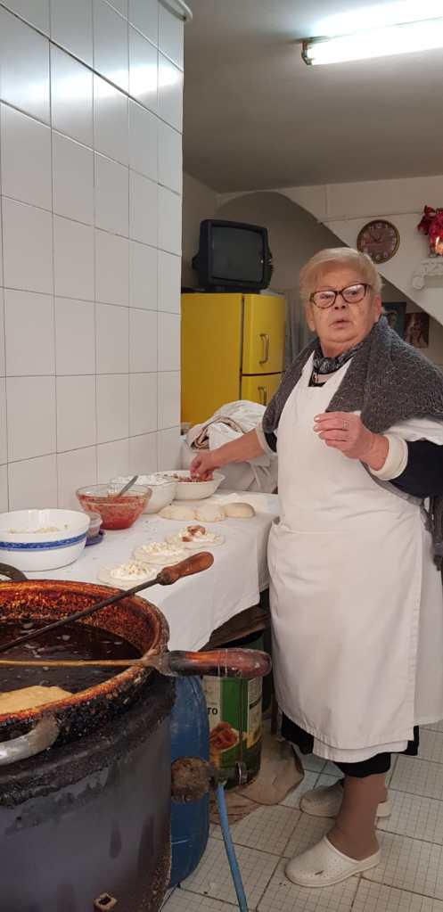 Fernanda è un po’ contrariata a domande e foto, so periodi frenetici e la fila è abbastanza lunga, la pubblicità non sa cosa sia e se ha clienti che aspettano non può permettersi di perdere tempo. Io sono uno “scassa” di tutto rispetto ma di fronte a una divinità del genere non oso andare oltre e mi godo semplicemente l’incanto: gesti semplici e antichi, cadenzati con precisione, lenti come lo splendore di chi fa le cose con una maestria ereditata, senza tempo…