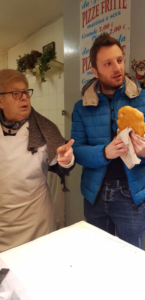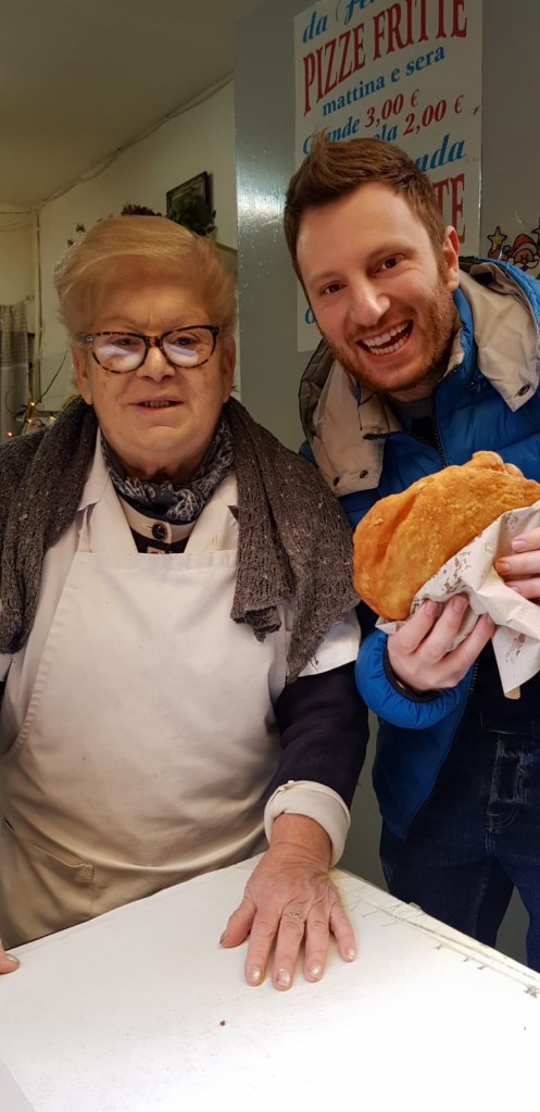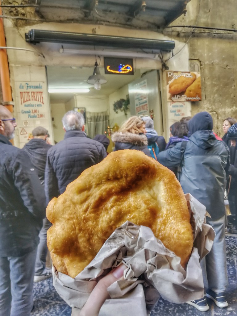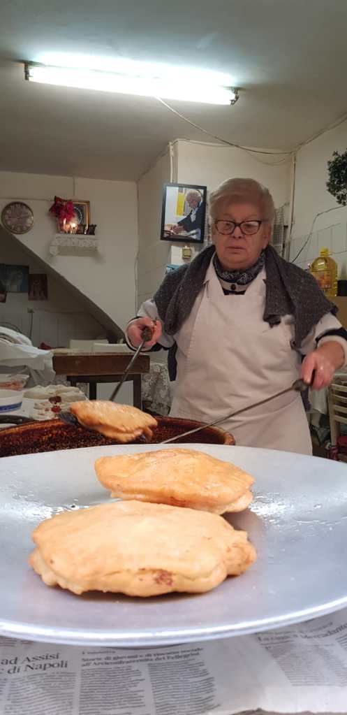 Un “vascio” (basso), uno spazio che sarà di qualche metro quadro, un calderone di olio caldo e la signora Fernanda, 80enne arzilla ed espansiva, che da cento anni, da madre in figlia, porta avanti la tradizione della pizza fritta. Seconda di 6 figli, vive a Via Speranzella, praticamente da sempre. Fa tutto da sola: dall’impasto, rigorosamente a mano senza l’aiuto di impastatrici, alla scelta degli ingredienti fino alla frittura.