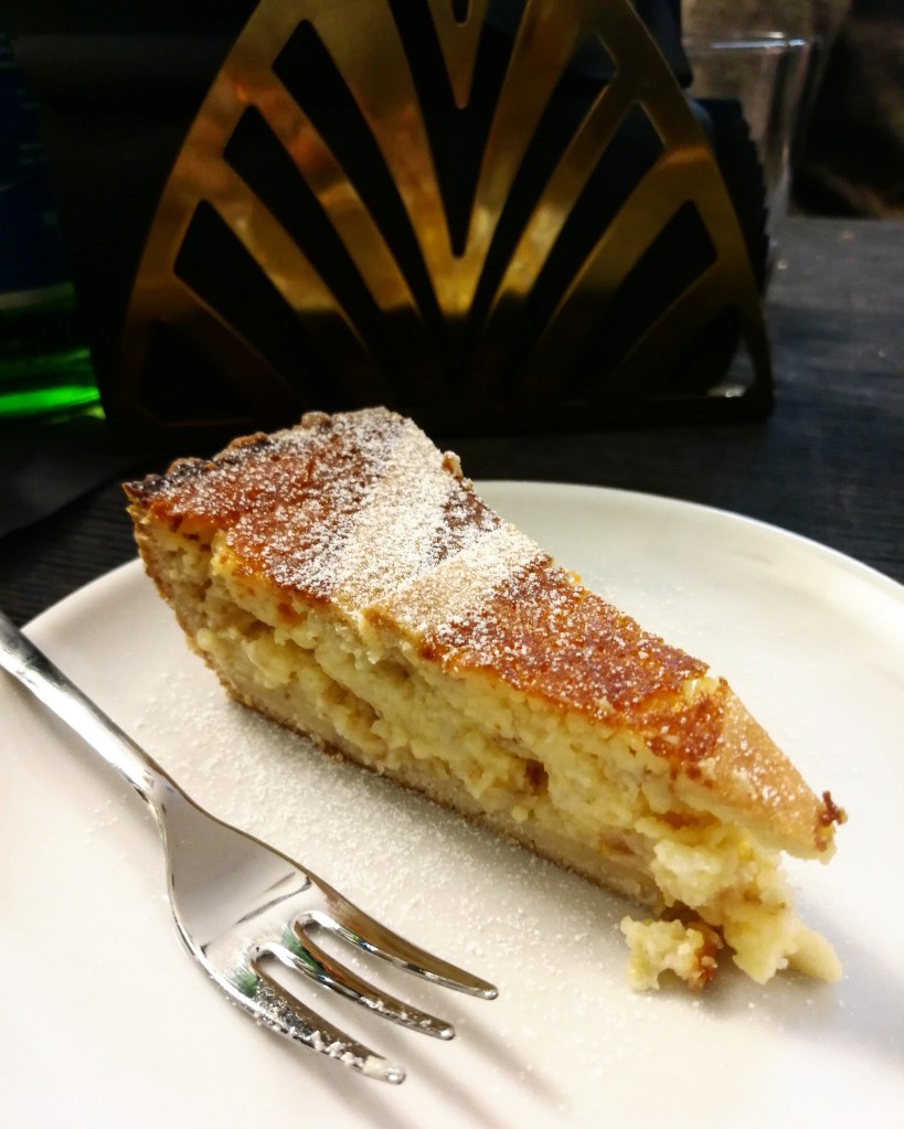 Salsicce e fiarielli, caposaldo nostrano, disegnati veramente a mestiere, con carne profumata e saporita e verdure callose, dal verde brillante, forti e piacevolmente amare. Un’ottima fetta di Pastiera ha ristabilito l’equilibrio di dolcezza.