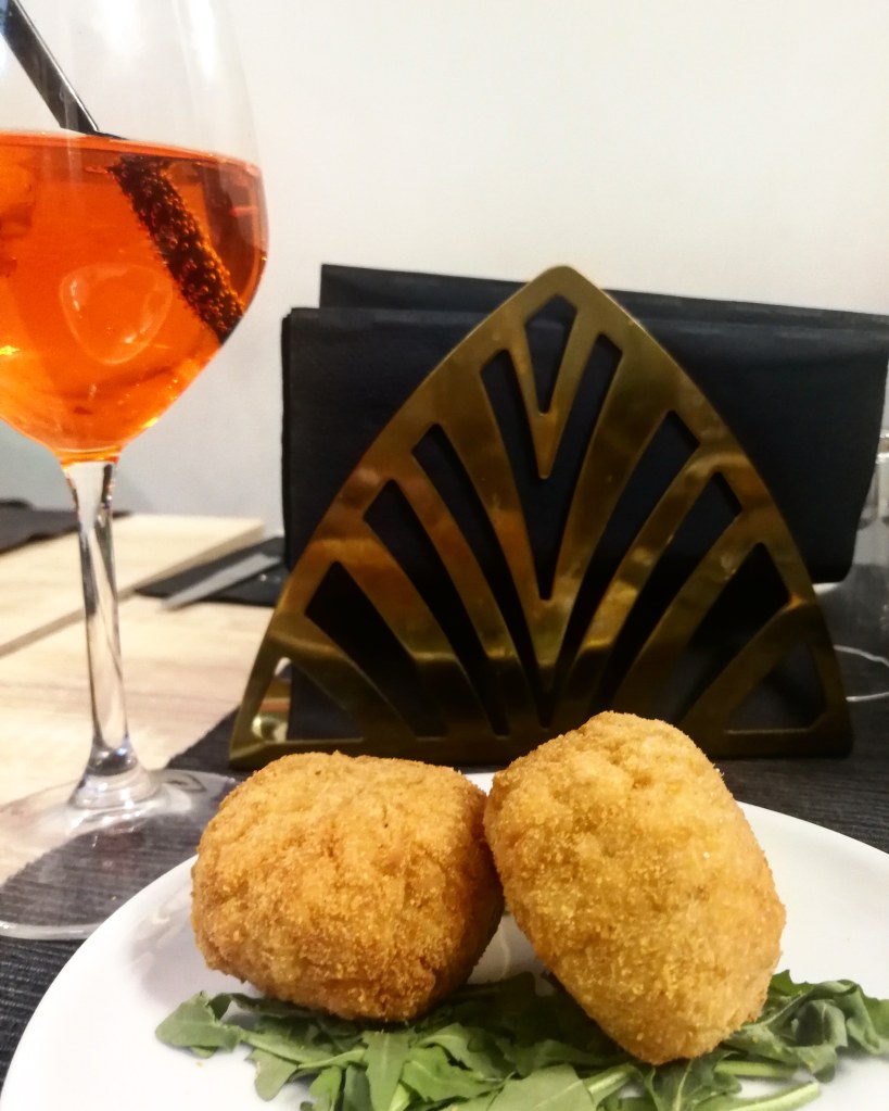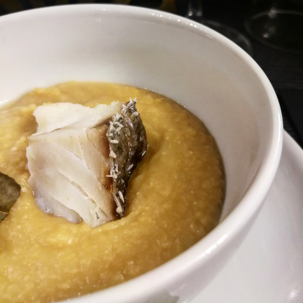 Squisite le Palle di riso di “zia Geppina” come appetizer da abbinare a uno Spritz, fatte con tanto cuore, ‘nzogna (strutto) e pepe… Delicata e raffinata la Crema di ceci, alloro e baccalà, armonica nei colori e nelle consistenze.