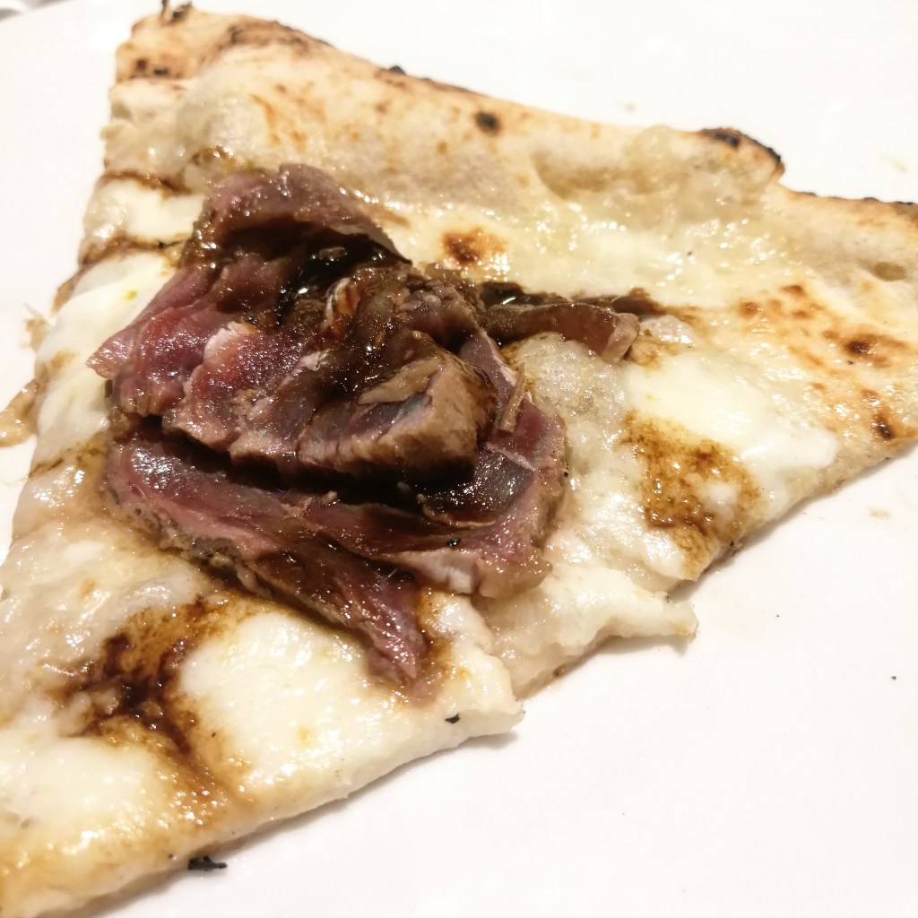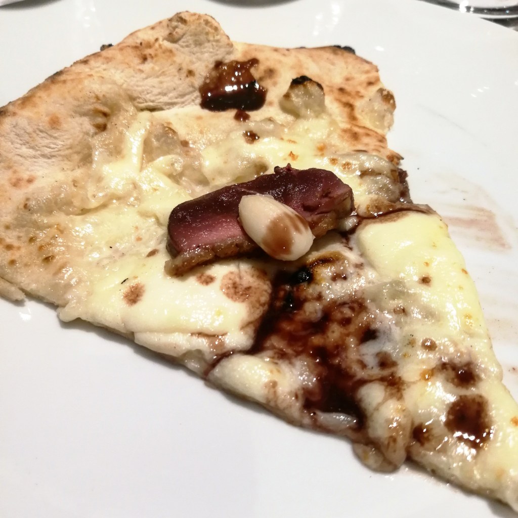 Una crema di impepata di cozze inonda la morbidezza dell’impasto della casa su una base di fiordilatte sotto una pioggia di pecorino: la pizza che più mi ha conquistato, quella che avrei mangiato per intero, concettualmente interessante e francamente spiazzante.