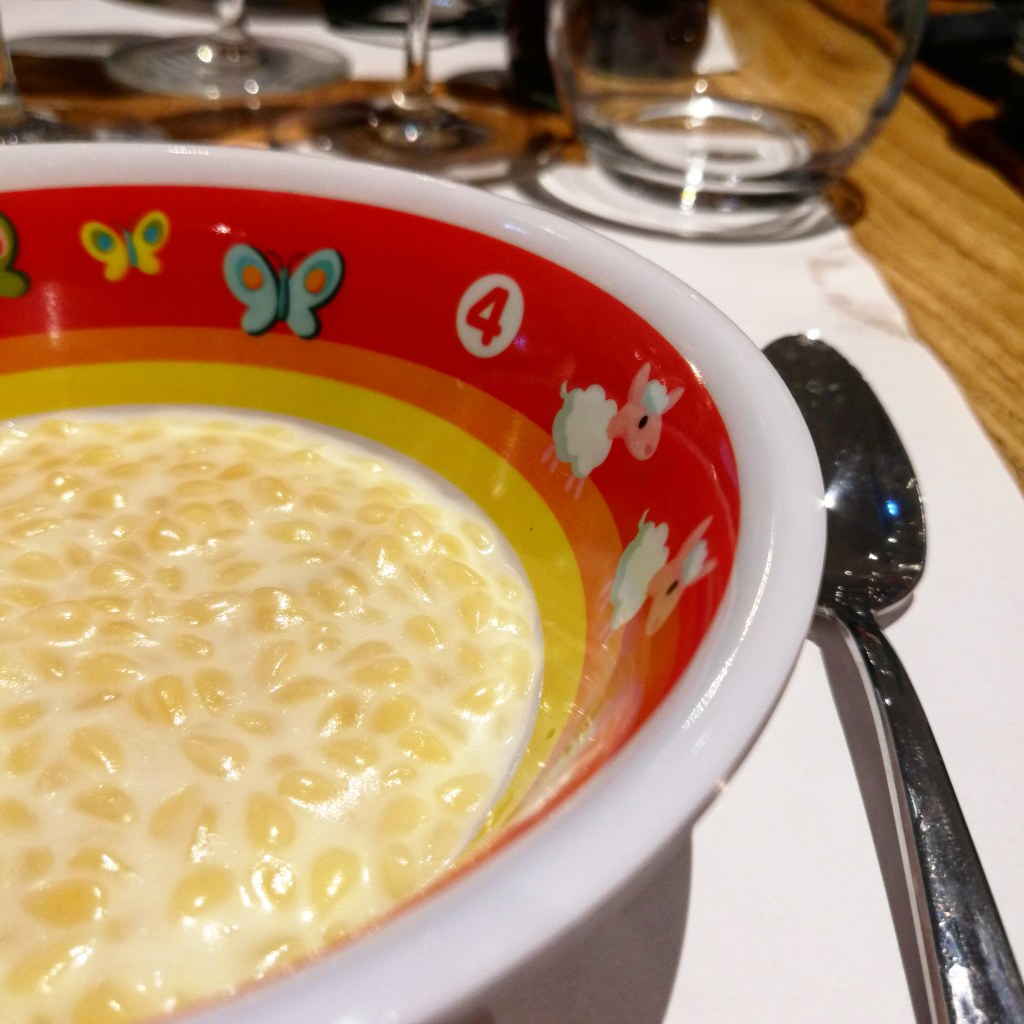 Il sipario non è per niente calato, et voilà le coup de théâtre, l’agnizione della Pastina al formaggino, servita in scodelle per infanti, l’elogio alla bufala, il vassoio di formaggi prima dei dolci. Un gioco, una provocazione, un pungolo inaspettato da leccare i baffi e ciotole tutte pulite!