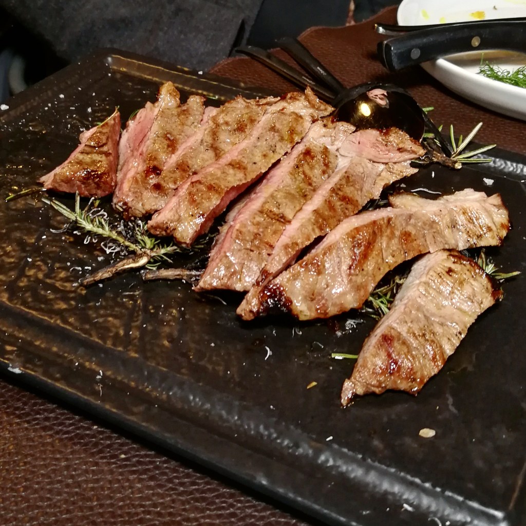 Poi si infiamma la brace ed ecco serviti assaggi di bovino, suino e agnello con contorni vari: carni davvero di ottima qualità, cotte alla perfezione, che strizzano i sensi totali anche a un “ciccia disadattato” come me.