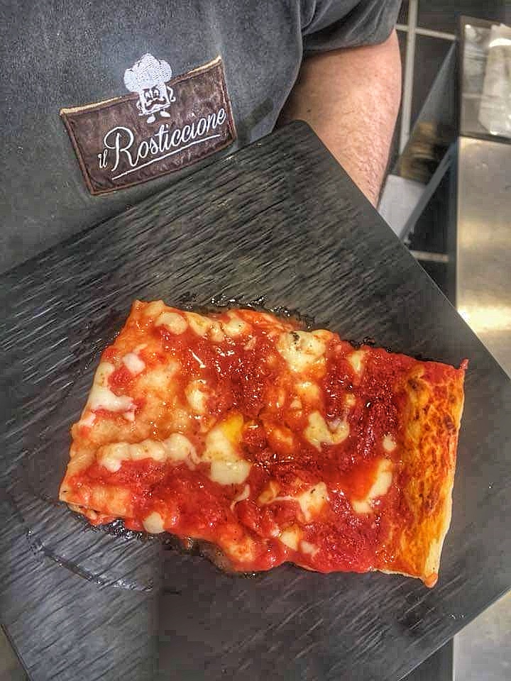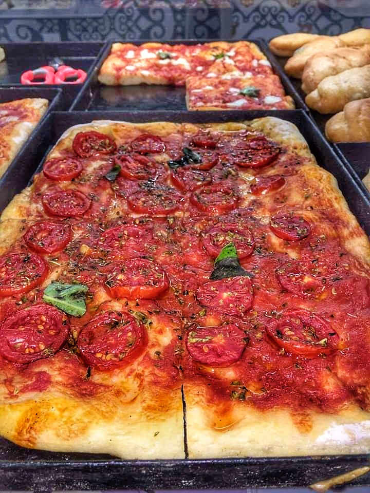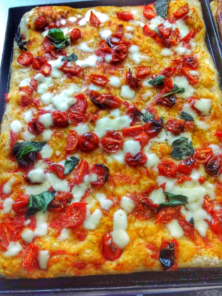 Avevo 6 anni da poco compiuti, quando sbocciò il grande amore e quei gesti cadenzati, protagonisti per lustri ai miei occhi, sono fantasticamente nitidi: il raggio di sole che si rifletteva sulla teglia, il suono della lama che porzionava i tranci, il profumo del pomodoro inebriante, lo scintillio dell’olio che strabordava tra le mani, i cubetti di fiordilatte irregolari… e come sempre qualche aneddoto, aforisma, lezione di vita dell’autore – protagonista, Vincenzo, di una ennesima emozione, talvolta alla marinara o con le patate!