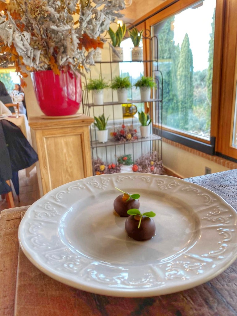 Cioccolatini fondenti di guanciola di maialino e l’inganno sensoriale aprì le danze: una esaltazione del subconscio, per due sapori apparentemente in contrasto.