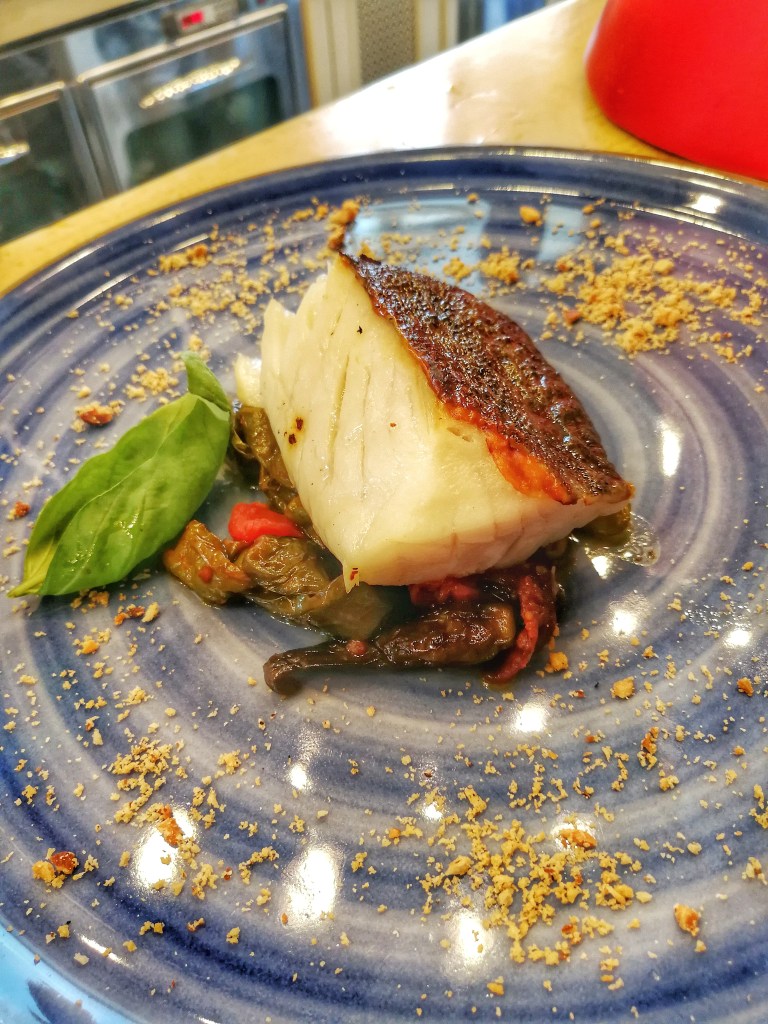 Da applausi l’abbinamento baccalà con peperoncini verdi di fiume, dove la cottura sottovuoto a bassa temperatura esalta la pregevolezza della materia prima e il tarallo sbriciolato solletica il palato; terra e mare si fondono in una simbiosi di fastosa raffinatezza.