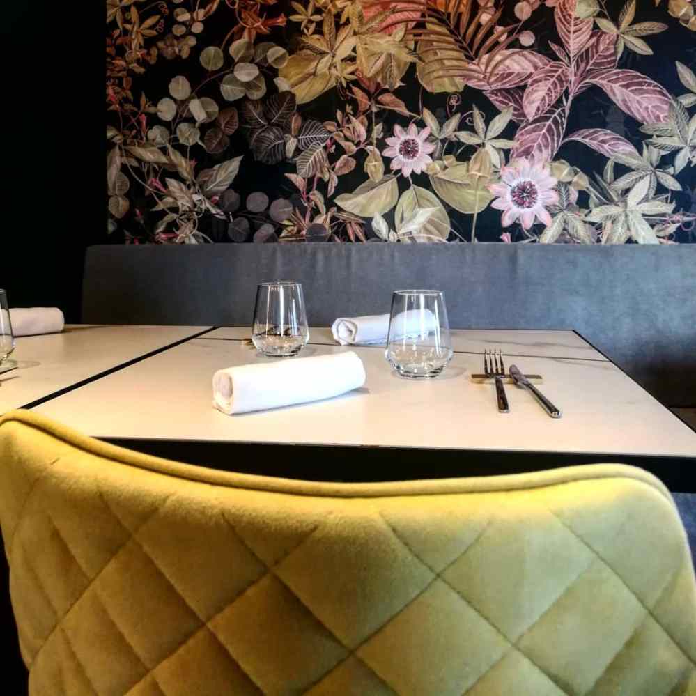 Locale raffinato ed elegante, marmi, venuzze d’oro, velluti, foliage alle pareti.