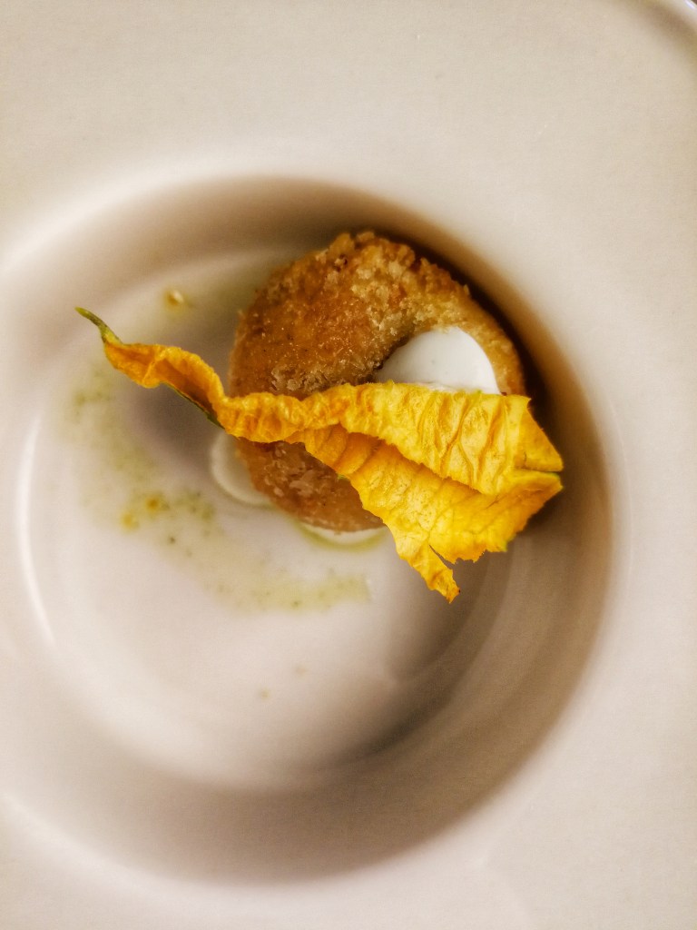 Il Bon Bon di fiore di zucca vince la gara dei fritti: battuta la frittatina di pasta e fagioli e cozze sulla base della grintosa e saporita personalità.