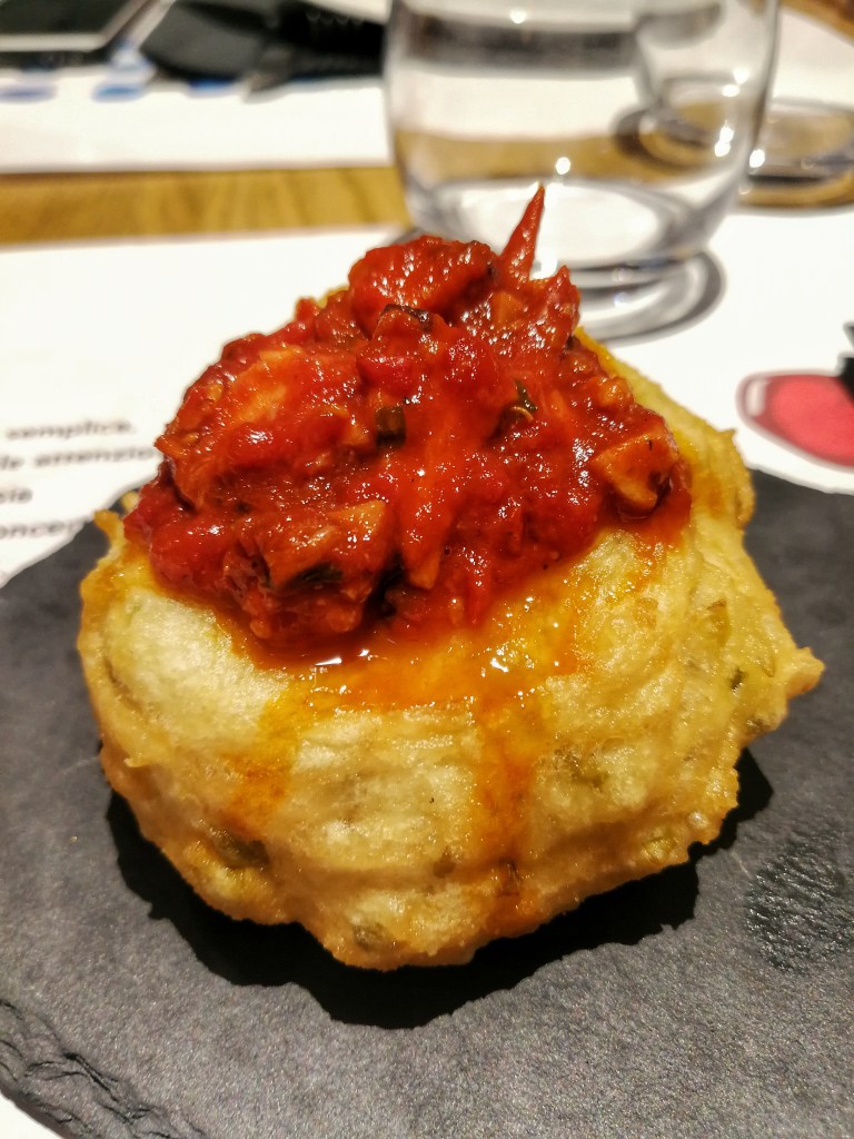 Accade poi che la pasta cresciuta dei Salvo si nutre di alghe, il pomodoro Corbarino cede alle lusinghe del polpo. La Montanara Gourmet è un soffio di mare fritto dove la dolcezza dell’oro rosso della terra riecheggia nella lenta e ricca essenza del ragù di polpo, dall’intensità corposa, piccante e coinvolgente.