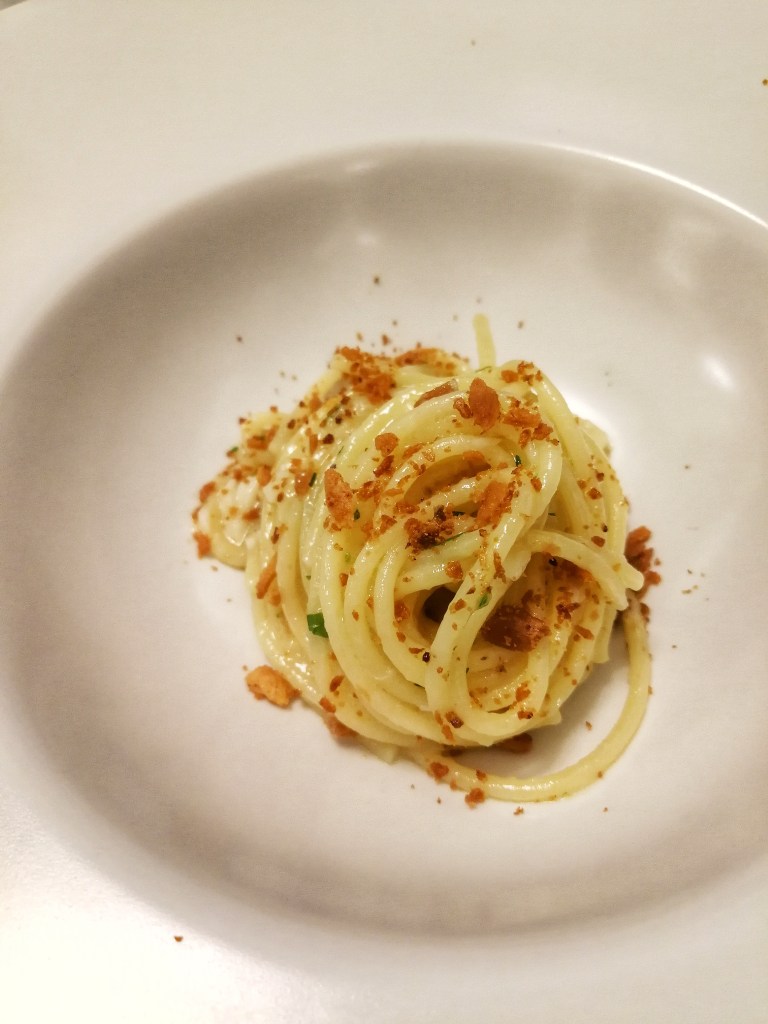 E mo tra spaghetti e panura saporita alle alici di Cetara.