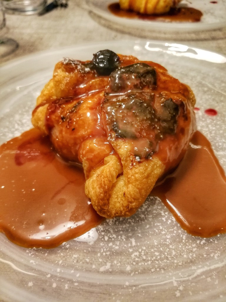 Poi, come ogni fiaba che si rispetti, l’apoteosi finale dove, alla sprovvista del lettore, un filtro segreto e una “Mela Stregata” colorano il lieto fine: mela Annurca ripiena di crema Chantilly avvolta in pasta sfoglia artigianale e ricoperta con salsa Mou e amarene. Protagonista, fine pasto identitario che dà nome al locale, una stregoneria per dipendenza e bontà che sprigiona, realizzato dalla fata buona Santa Di Mauro (resident chef del locale di Lusciano).