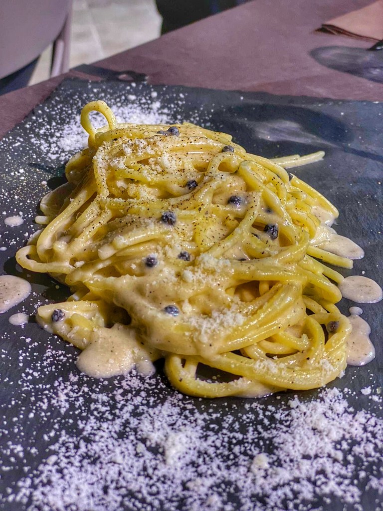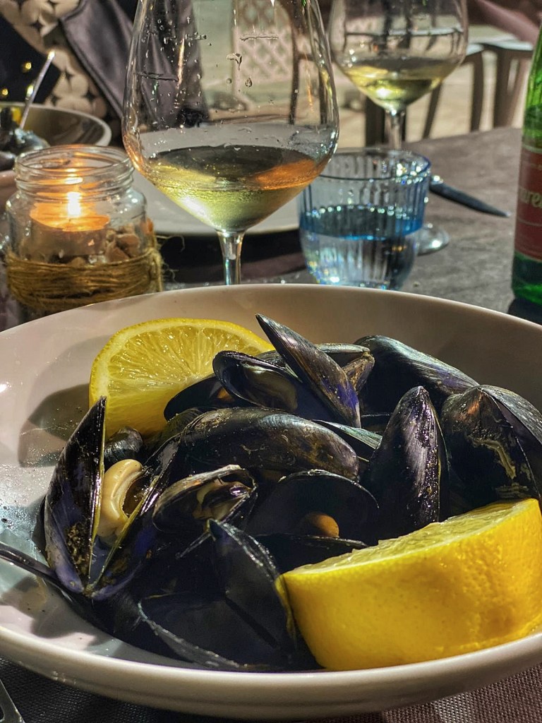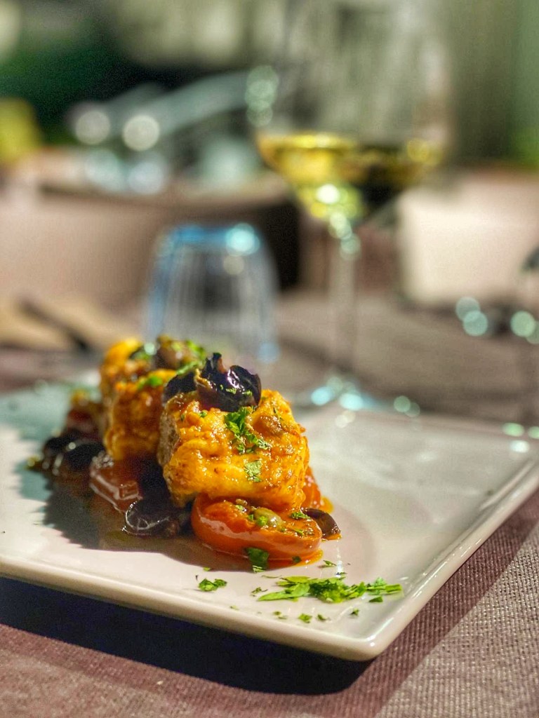 Fresco e cremoso il Risotto alla pescatora, stracolma di zing la Cacio e pepe. Magistrale per qualità e manifattura il baccalà alla puttanesca, polposo e gustoso, piatto must della serata. Creazioni di mare e di terra firmati dagli chef Luca Marotta e Valerio Strino.