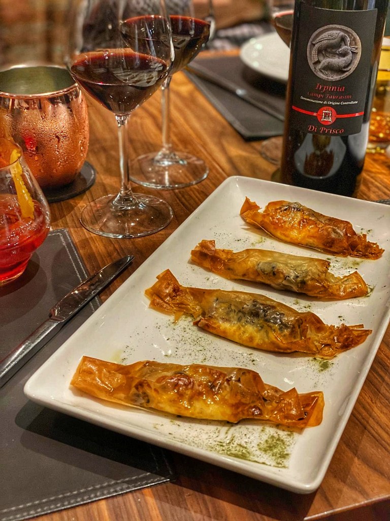 Anche si ci hanno sempre detto di non accettare caramelle da sconosciuti, scartocciamo senza indugio quelle di Dambo dove la “carta” fillo racchiude uno scrigno di scamorza d’Agerola, tartufo Irpino e pancetta Romagnola. Molto più buone, che belle ma come ogni caramella che si rispetti, provocano dipendenza…