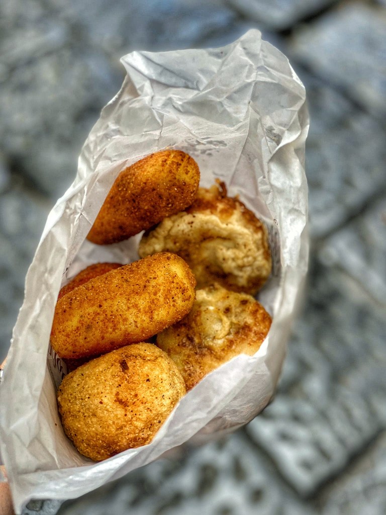 Antidoto alla malinconia, facilissimo da trovare… Piccoli miracoli che ‘nzivano (ungono) bene il cuore! Guilty pleasure, la morte del Less is more… Lusso partenopeo, vintage & trendy allo stesso tempo. Mai fanè… Pairing perfetto: frittatina, pall ‘e ris e crocchè.