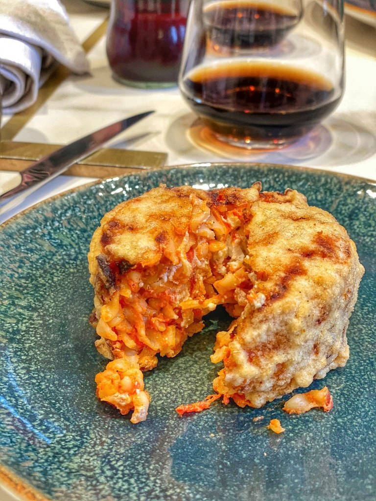 Pomodori San Marzano, pomodoro del Piennolo confit, alici di Cetara, mayo al prezzemolo, origano di collina, polvere di olive nere di Gaeta, aglio rosso di Nubia. La Porta Nolana spiazza, un energizzante partenopeo. Marinara viva, vivace, avvolgente, una specie di esplosione lentissima, dove la dolcezza dell’oro rosso si concede alla salinità delle alici nel vortice cremoso della mayo. Tutte le note del mercato e ‘ngopp ‘e mur. Ipnotizzato.