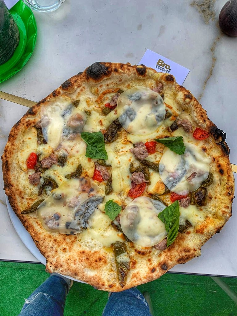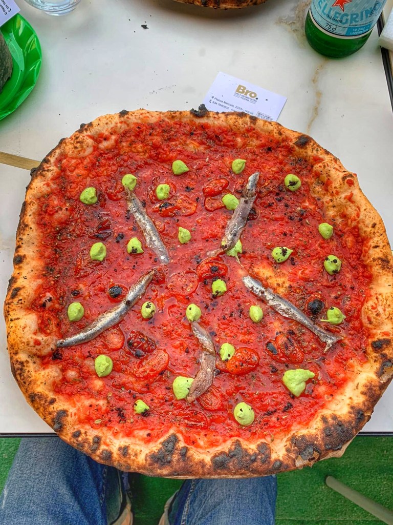 Degno ventaglio di questo sentimento. L’impasto che sa di antico dalla manifattura di mani moderne, narciso per sapore e dimensioni, vanità delicata ma presente. Figlio di Napoli, da figli ‘e ‘ndrocchia (nel senso buono, ovviamente!). Scrupolosi e precisi nelle creazioni, esercizi di simmetria per vista, olfatto e gusto. E la bellezza di trasformare un menù nel racconto di un territorio, di incorniciare una fetta di mondo, identità di un quartiere.