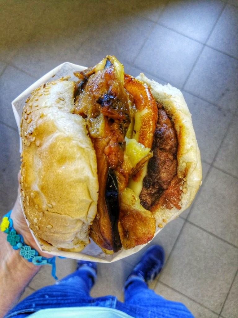 Un quadrilatero perfetto. Quattro lati uguali: hamburger della casa 200 g, provola affumicata, patate al forno, parmigiana di melanzane bianca. Quest’ultima un triangolo equilatero di melanzane, prosciutto cotto e besciamella.