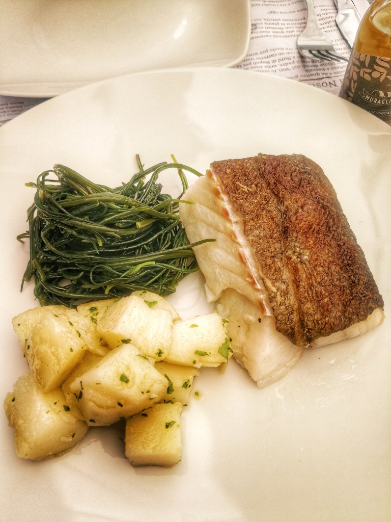 Il Re, poi, si presenta fritto con papaccella e alla piastra con patate e agretti. Come oro,