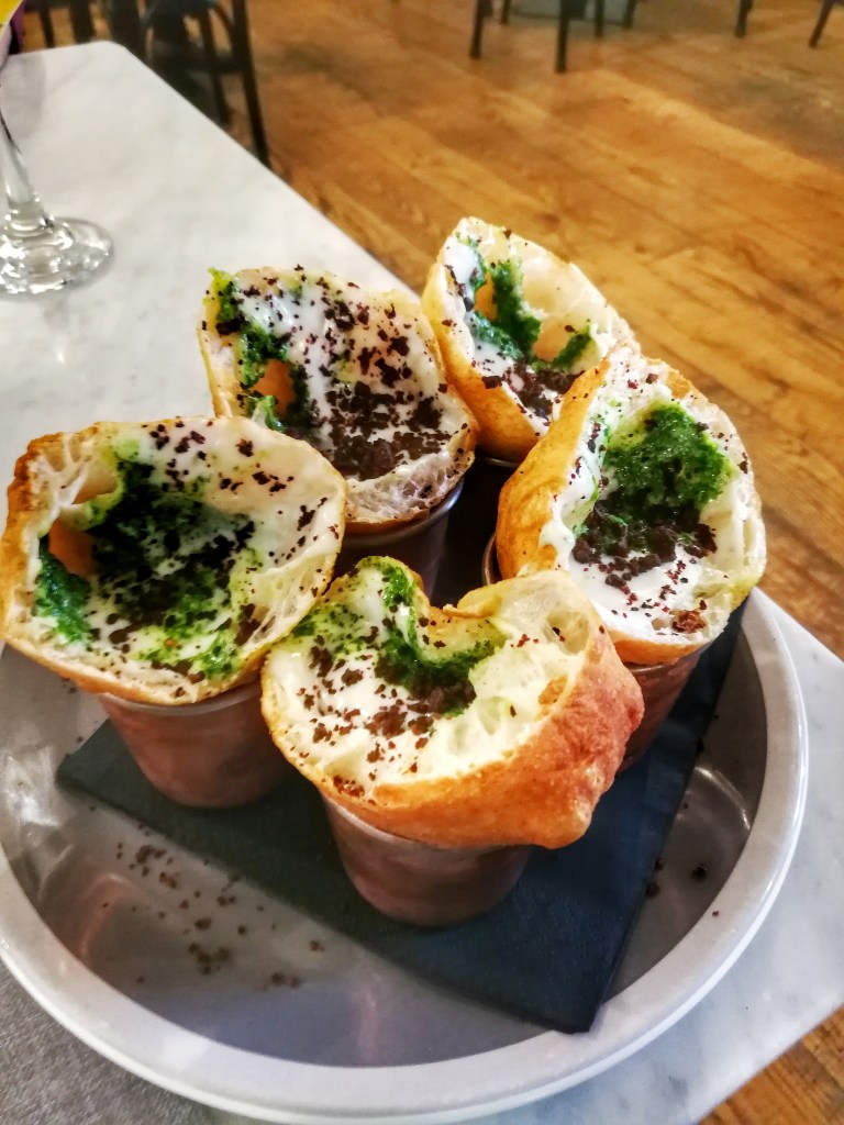 Contavo i secondi che mi separavano dai sei spicchi immersi nella fonduta di Grana, con la bufala filante, la densità esplosiva della composta di pomodoro a crudo, il gioco delle scaglie.