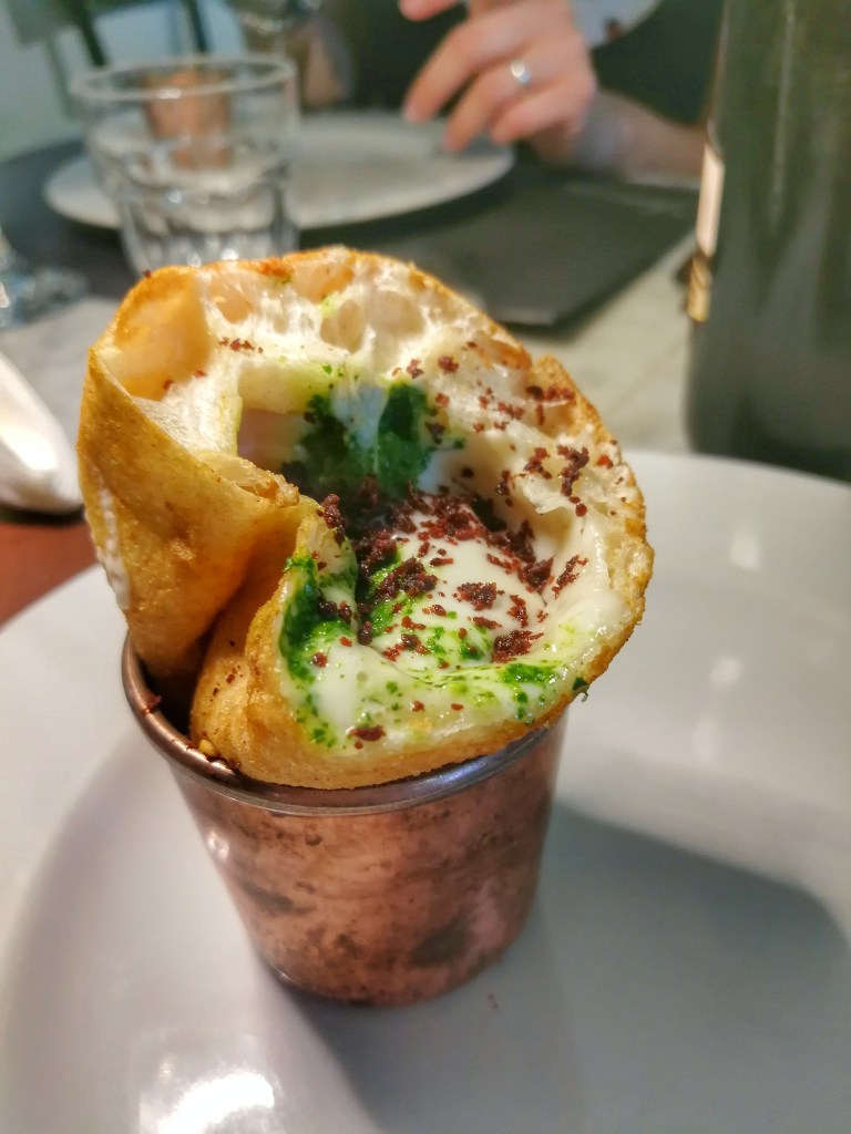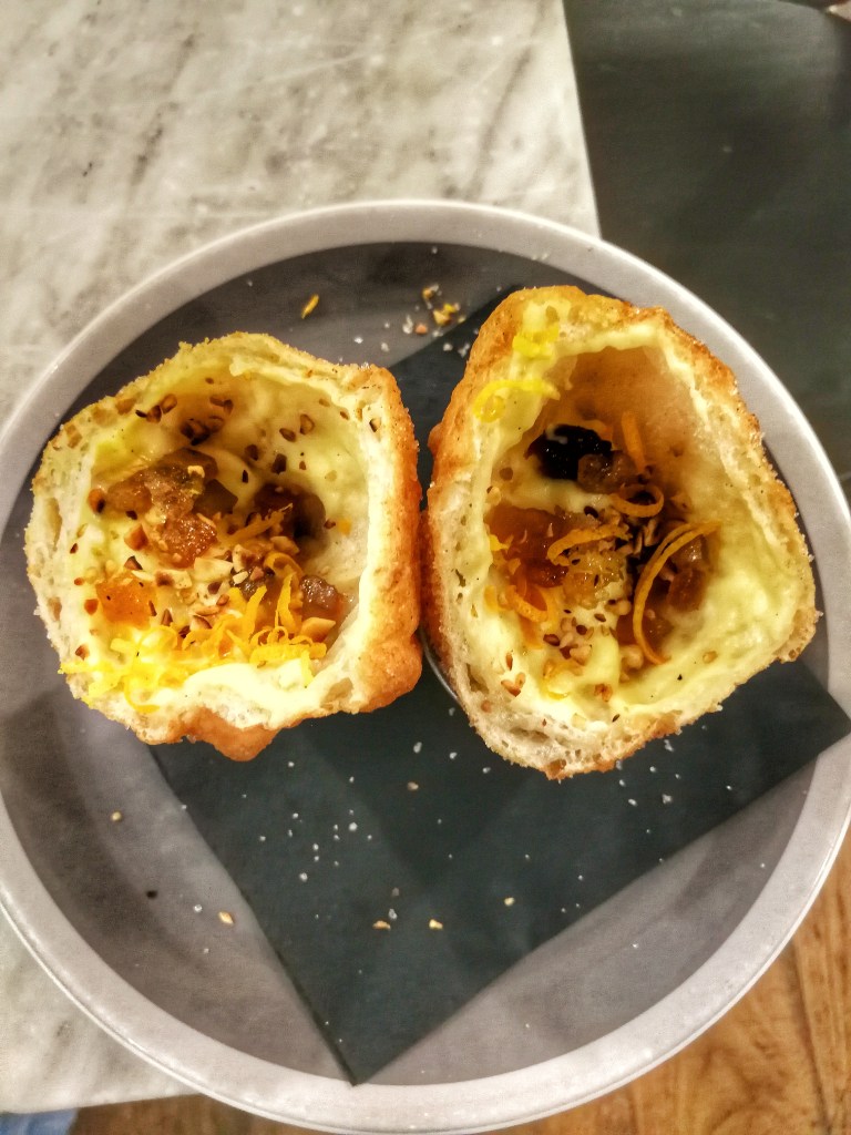 La Melanzana Bruciata aveva i dettagli di cui innamorarsi: fiordilatte, scamorza affumicata, polpa di melanzane bruciata al cumino, cumino in polvere, lime, dischi di melanzana croccante. Stream of consciousness, consapevolezza delle proprie idee insomma. Una creazione elegante sulla base di sapori familiari, domestici, con la fragranza che già sazia. Quando il vero mistero è il visibile…