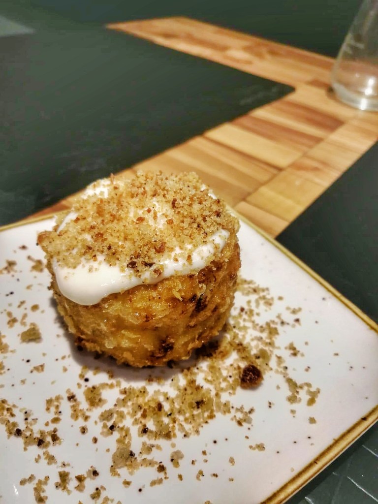 Forno e cucina si incontrano nella Declinazione di Ciummo dove la pancia di maiale cotta alla birra a bassa temperatura sguazza nella crema di peperoncino di fiume e sotto una pioggia di polvere dello stesso. Carne scioglievole dal retrogusto piacevolmente dolce che contrasta l’amaro del “puparulillo”. Ogni volta ha un sapore diverso finché il palato si abitua e i sapori si mescolano negli ultimi morsi. Una delle migliori col Ciummo…