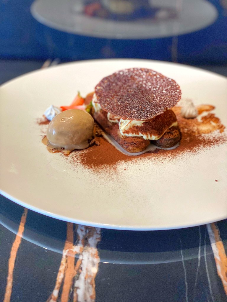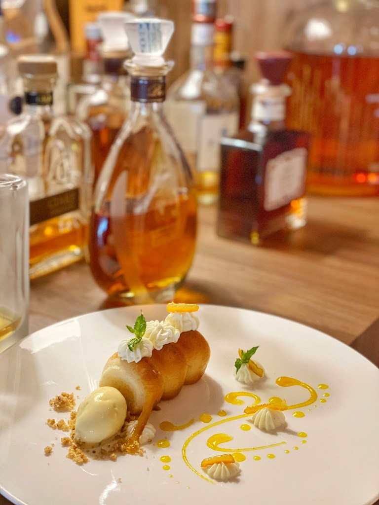 Entrée illusorio. La crema di sedano rapa e finocchio unita alla sferificazione di carota si maschera da uovo. Basilico in polvere, chips di riso. Visivamente perfetto, cremosamente avvolgente. Delicatesse.