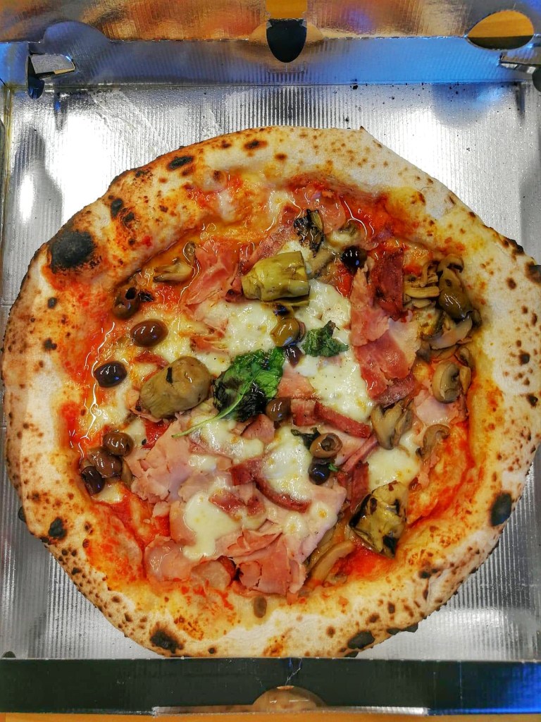 Capricciosa classica che incontra un tessuto moderno. Topping da manuale della tradizione: San Marzano, prosciutto cotto arrosto, salame Napoli, funghi, carciofini e olive nere di Gaeta. Equilibrio e quel gioco preciso che affonda le radici in una bellezza eterea. Applausi.