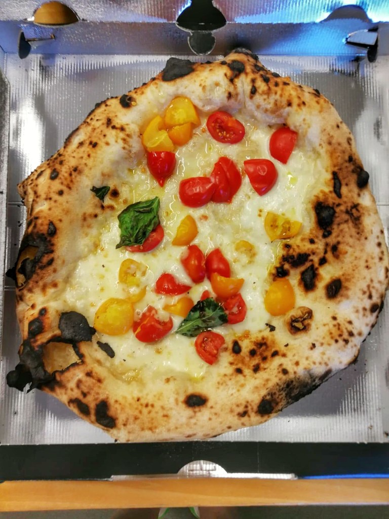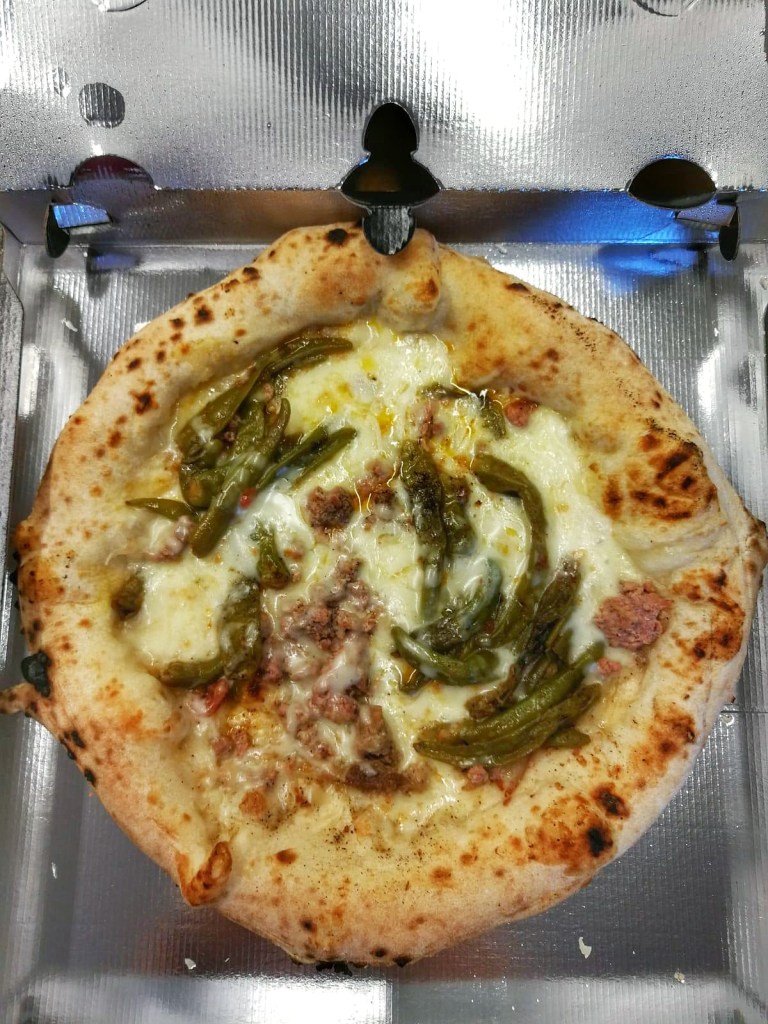Carrettiera sì, ma di stagione: i friarielli lasciano il posto ai peperoncini verdi fritti (in purezza), salsiccia di suino dei campi flegrei, fiordilatte, scaglie di Monaco. Apprezzatissimo il No Tomato che esalta il puparulillo croccante e calloso, che abbraccia la ciccia succulente e si addolcisce col provolone. Simmetrie indovinate.