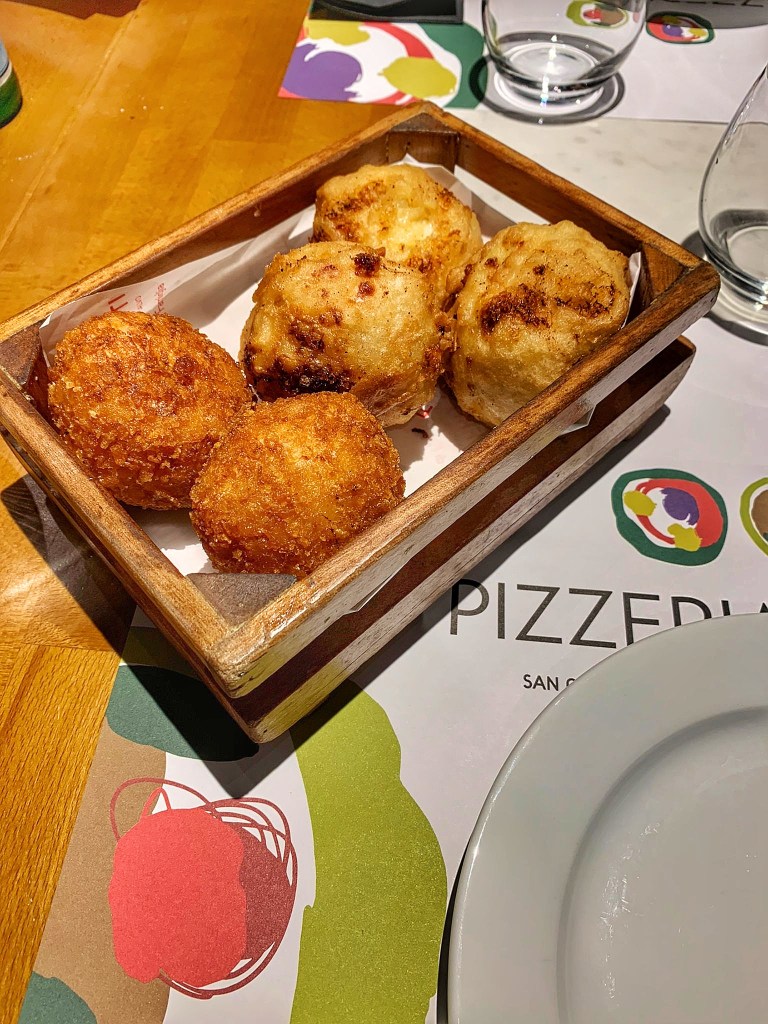 E nell’accademia dei Lincei del fritto la sorpresa eretica di un nuovo nascituro. Tra le varie signature che hanno fatto storia, et voilà arancino di riso Arborio, con burro di Alpeggio, baccalà mantecato in latte impanato con cornflakes.