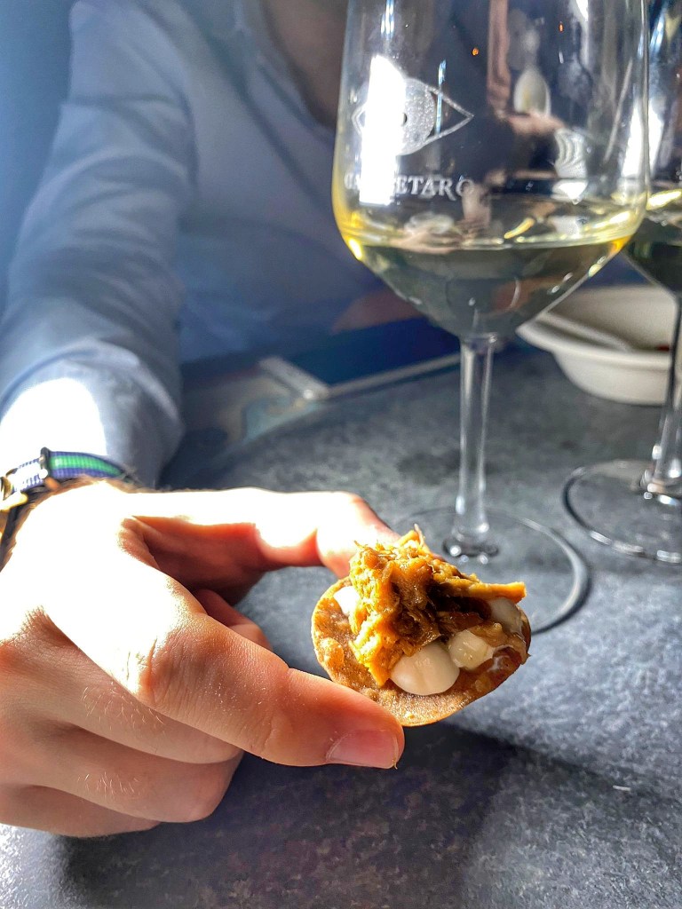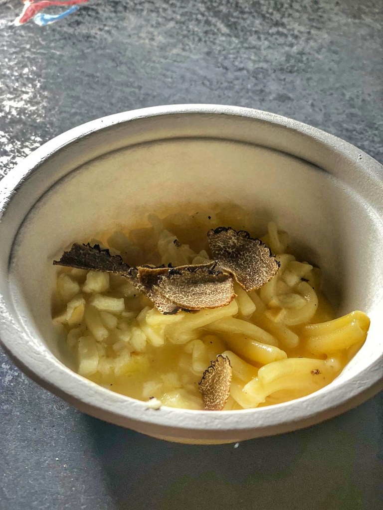 Conoscerli e innamorarsi. Calici di sole, luce, intensità e armonia e piatti di gioia tra terra e mare, sonetti di gusto, di fantasia a regola d’arte. Gambero furai, tacos di grano arso con stracotto di maialino, alici marinate, tartare di chianina, carpaccio di mozzarella, pasta e patate e tartufo, gnocchi di patate, coperta di manzo, capocollo di maiale alla brace.