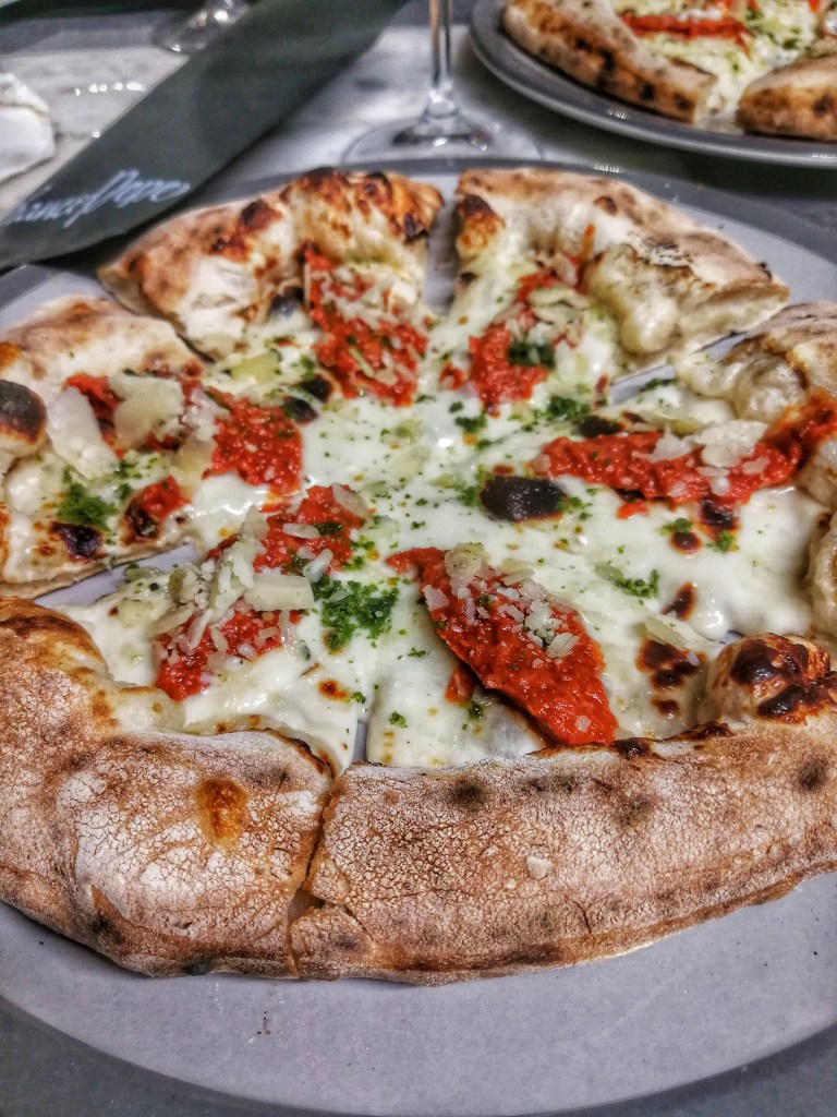 Qui incontri l’eleganza delicata della Margherita Sbagliata, dove il pomodoro riccio messo a freddo a fine cottura disarma con suadente malizia.