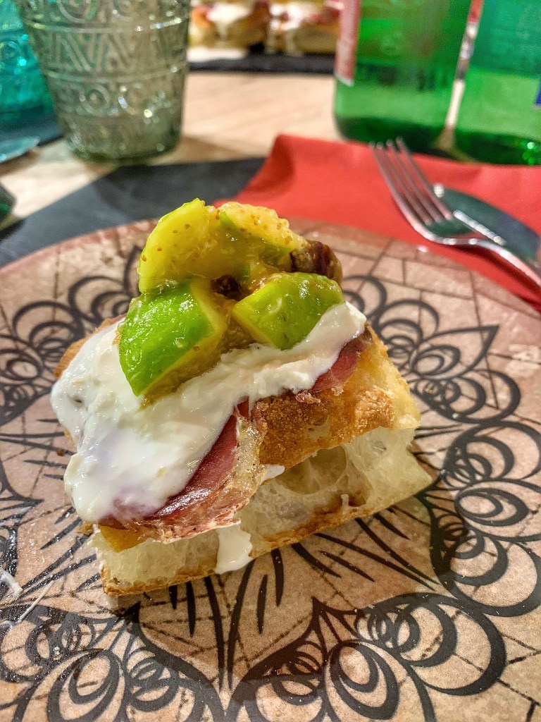 Leggerezza e sofficità, crosticina alla base e fragranza illegale che facilita lo SLURP. Second half: pizza al padellino (sempre nel forno elettrico) servita a 8 spicchi come pizza da degustazione (a mo’ di tapas). Bello ed elegante l’impasto con grani Campani macinati a pietra e lievito madre; il crudo, la bufala e le nocciole la cornice perfetta.