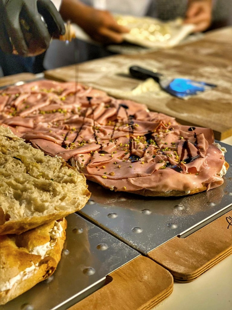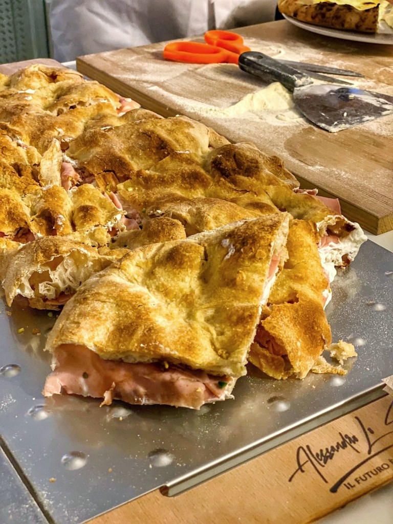 E così il maestro Alessandro Lo Stocco presenta Aroma con Germe di Grano, una farina di grano tenero “1” con germe di grano ottenuta da lenta macinazione. La sua Romana, 85% di idratazione, ha un cuore morbido dal crunch da cineteca, fragranza e friabilità da capogiro. Un involucro di gusto che accoglie stracciatella, rucola selvatica, mortadella di Bologna, aceto balsamico invecchiato. Estasiato!